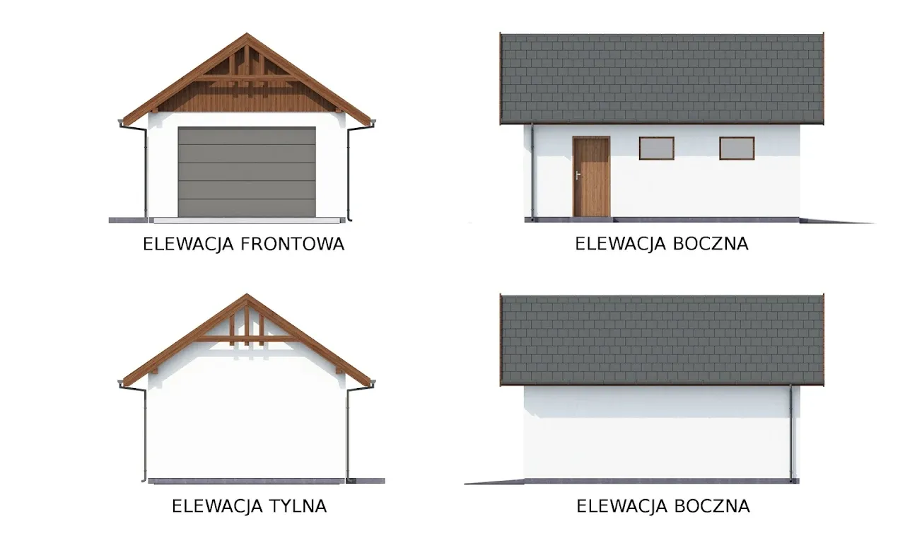 Rzuty gotowego projektu budynku G339a Garaż Jednostanowiskowy Na Zgłoszenie Szkielet Drewniany