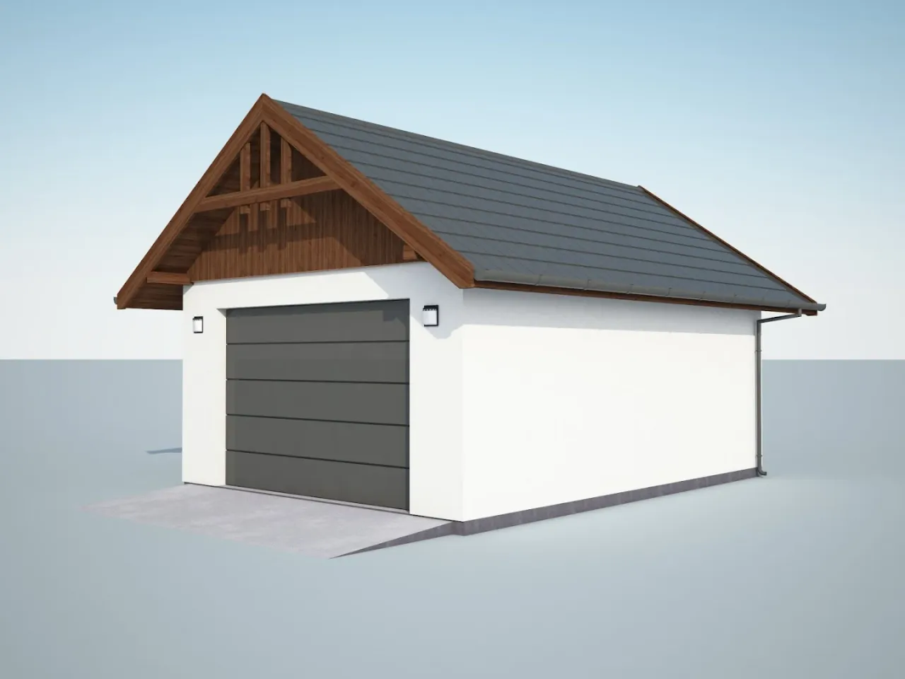 Wypełnij formularz i otrzymaj rysunki w pdf z dokładnymi wymiarami budynku i pomieszczeń (długość, szerokość, wysokość) dla projektu G339A garaż jednostanowiskowy
