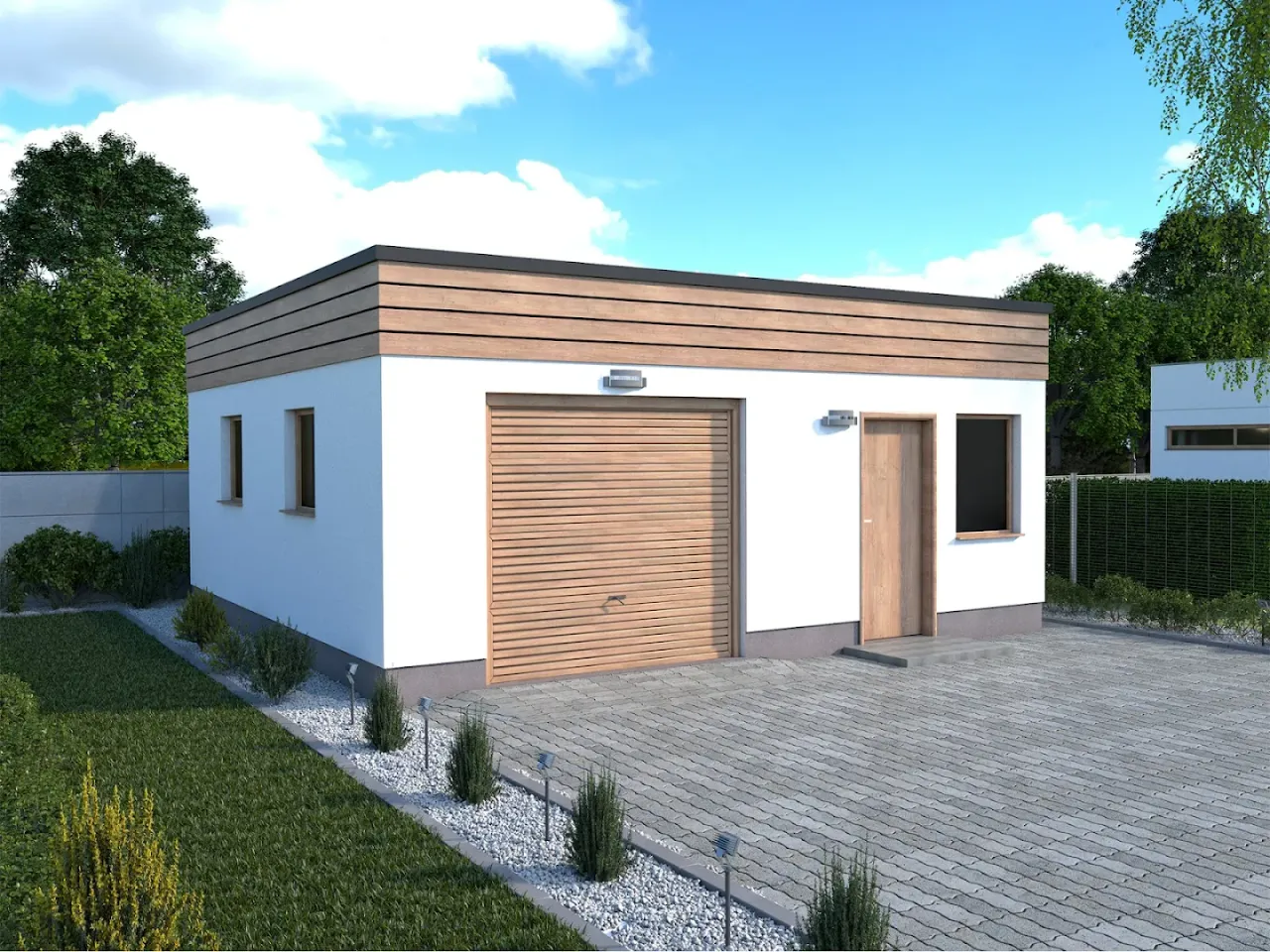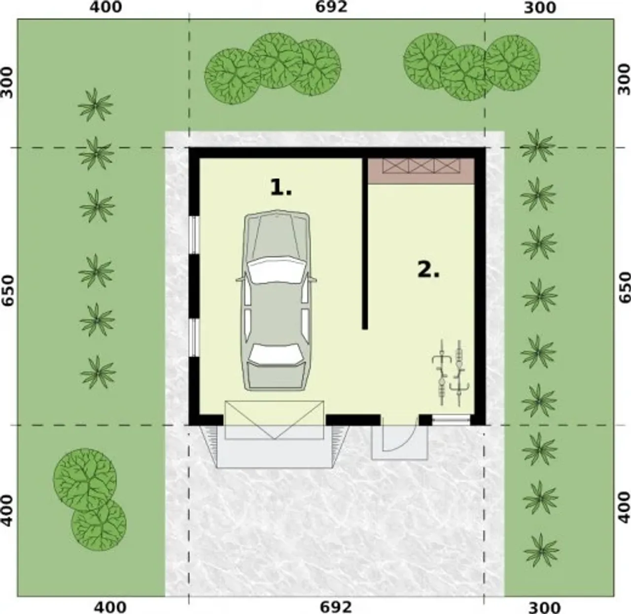 Wypełnij formularz i otrzymaj rysunki w pdf z dokładnymi wymiarami budynku i pomieszczeń (długość, szerokość, wysokość) dla projektu G345 garaż jednostanowiskowy z pomieszczeniem gospodarczym