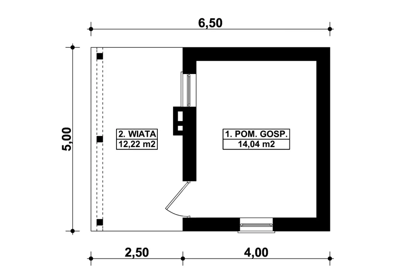 Wypełnij formularz i otrzymaj rysunki w pdf z dokładnymi wymiarami budynku i pomieszczeń (długość, szerokość, wysokość) dla projektu G351 - Budynek gospodarczy