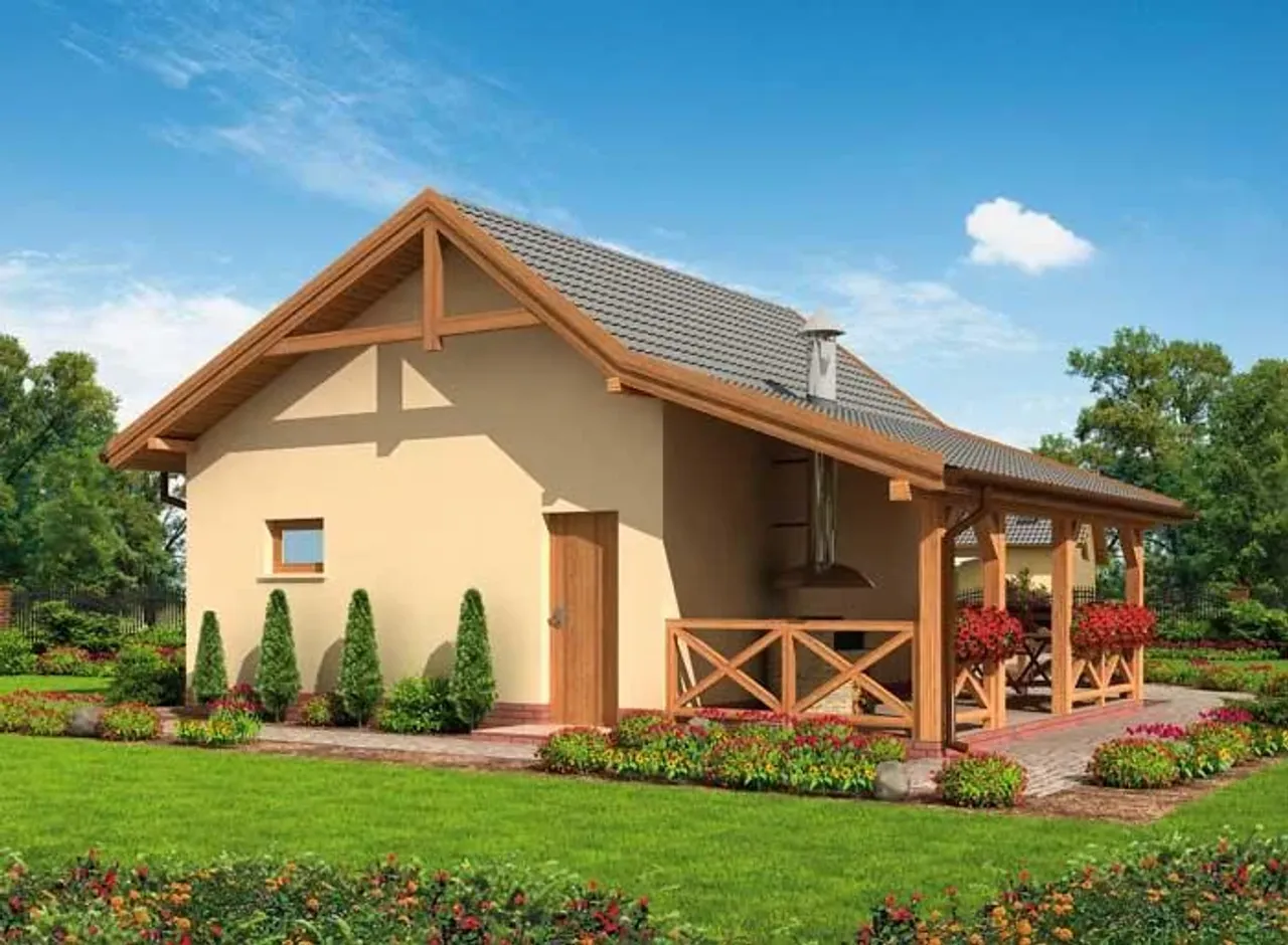 | Przestrzeń z pom. gospodarczym, z wiatą/altaną |