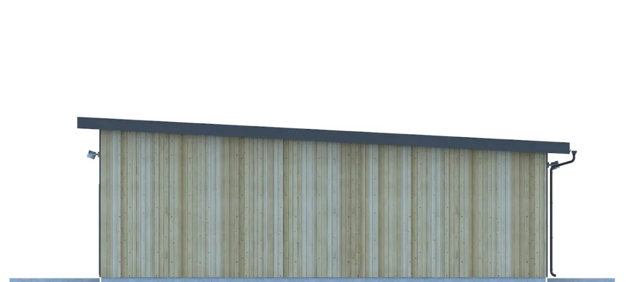 - Więźba dachowa: jednospadowa, drewniana, pokryta blachą na rąbek.