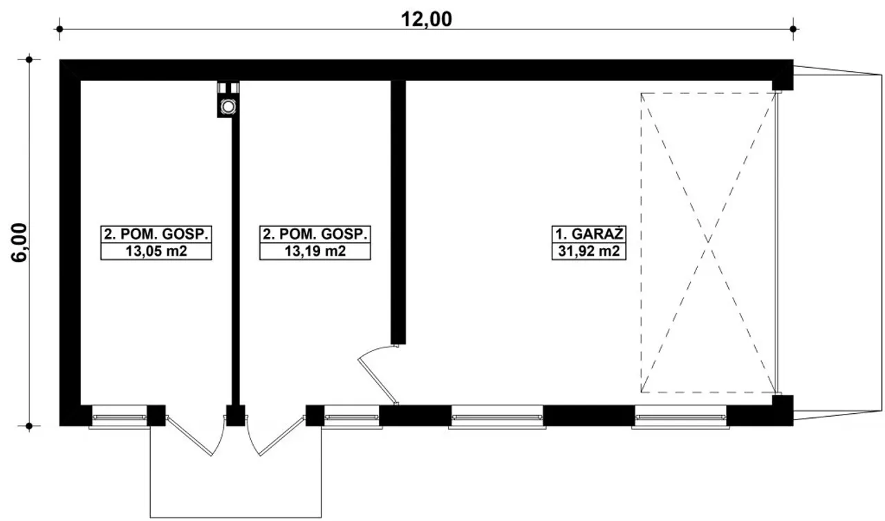Wypełnij formularz i otrzymaj rysunki w pdf z dokładnymi wymiarami budynku i pomieszczeń (długość, szerokość, wysokość) dla projektu G378 - Budynek garażowo-gospodarczy