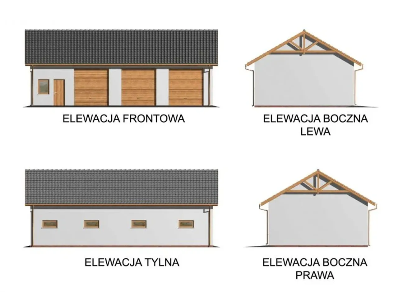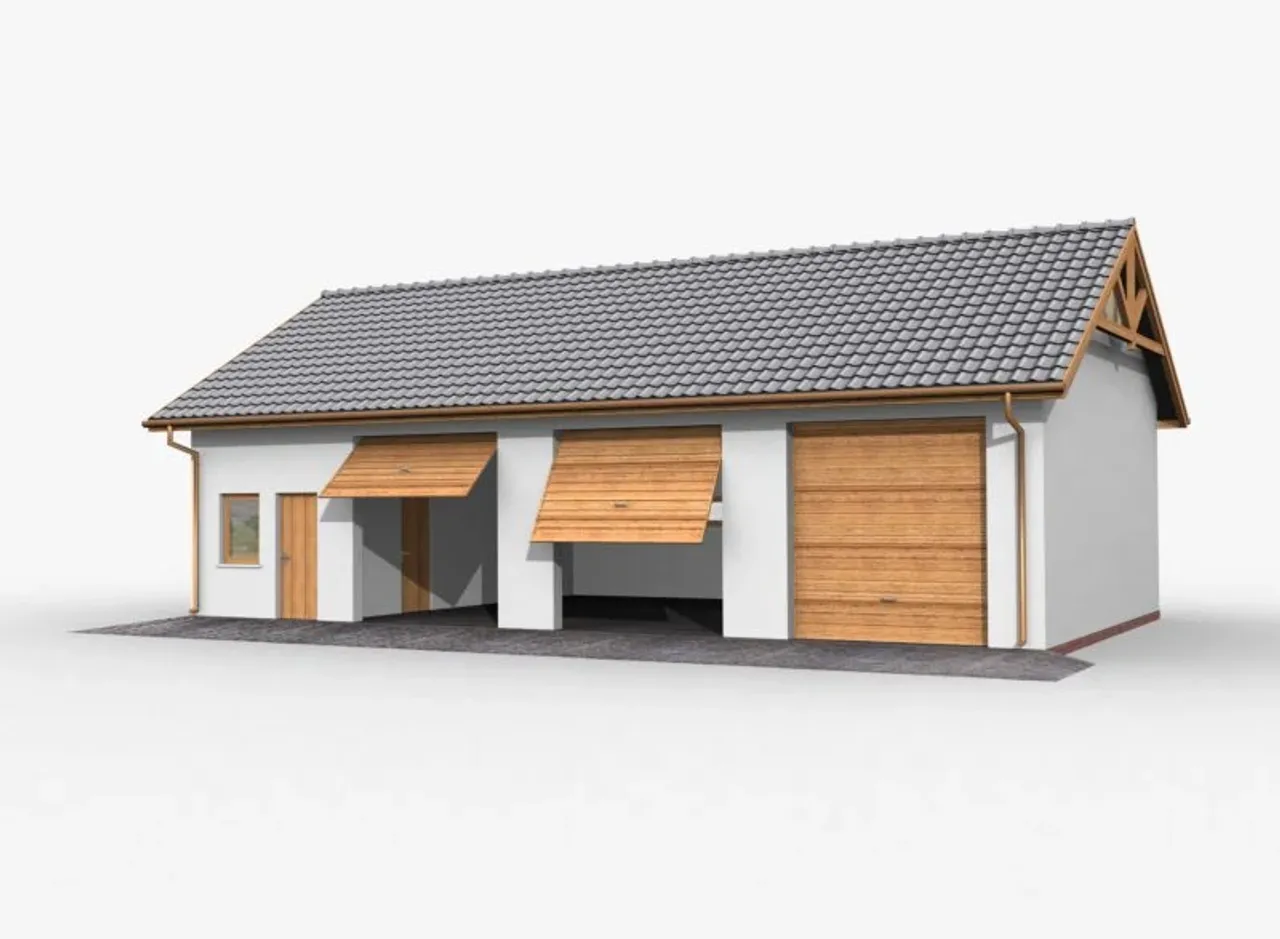 Wypełnij formularz i otrzymaj rysunki w pdf z dokładnymi wymiarami budynku i pomieszczeń (długość, szerokość, wysokość) dla projektu G38 szkielet drewniany, garaż trzystanowiskowy z pomieszczeniami gospodarczymi