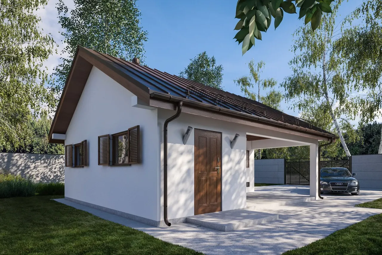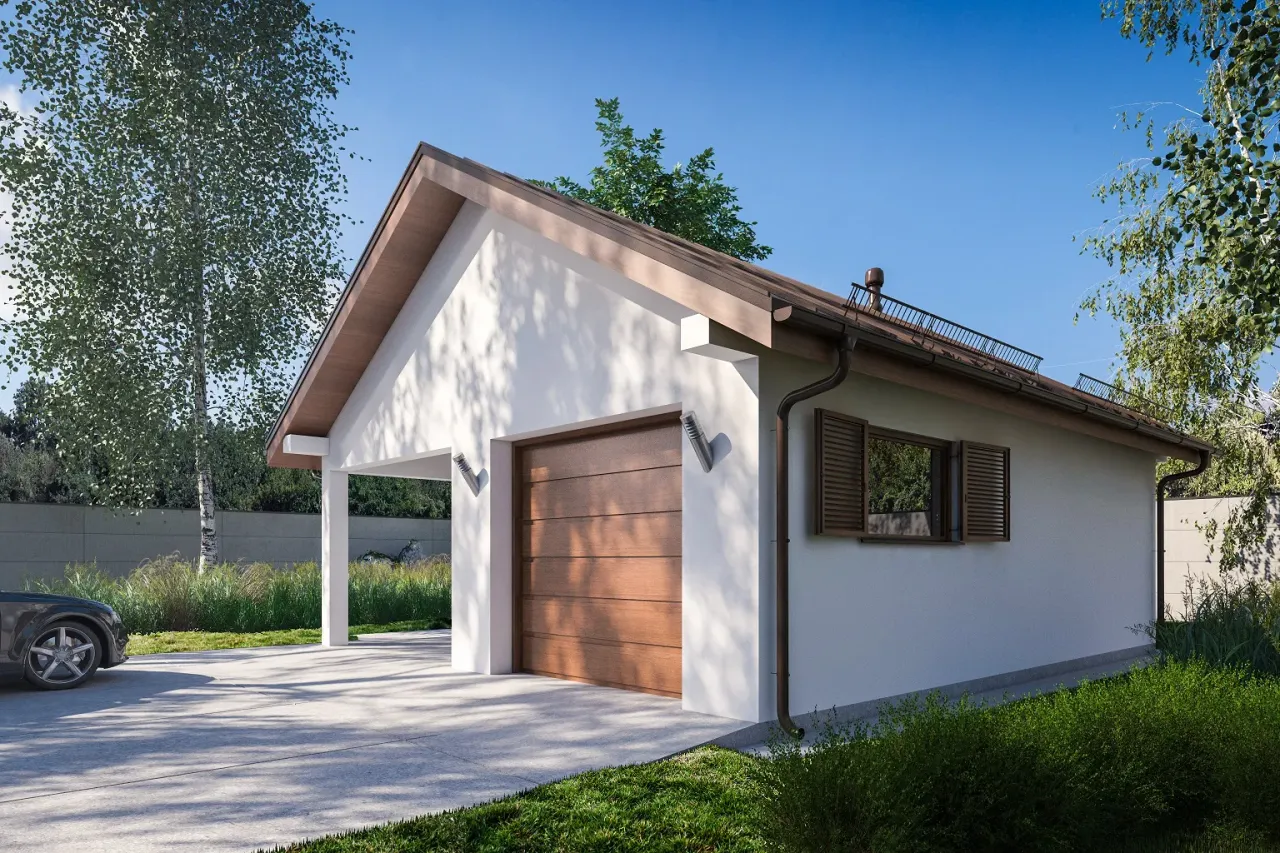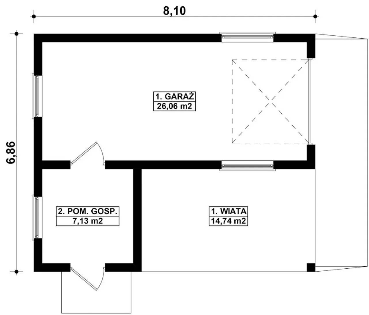Wypełnij formularz i otrzymaj rysunki w pdf z dokładnymi wymiarami budynku i pomieszczeń (długość, szerokość, wysokość) dla projektu G382 - Budynek garażowo-gospodarczy