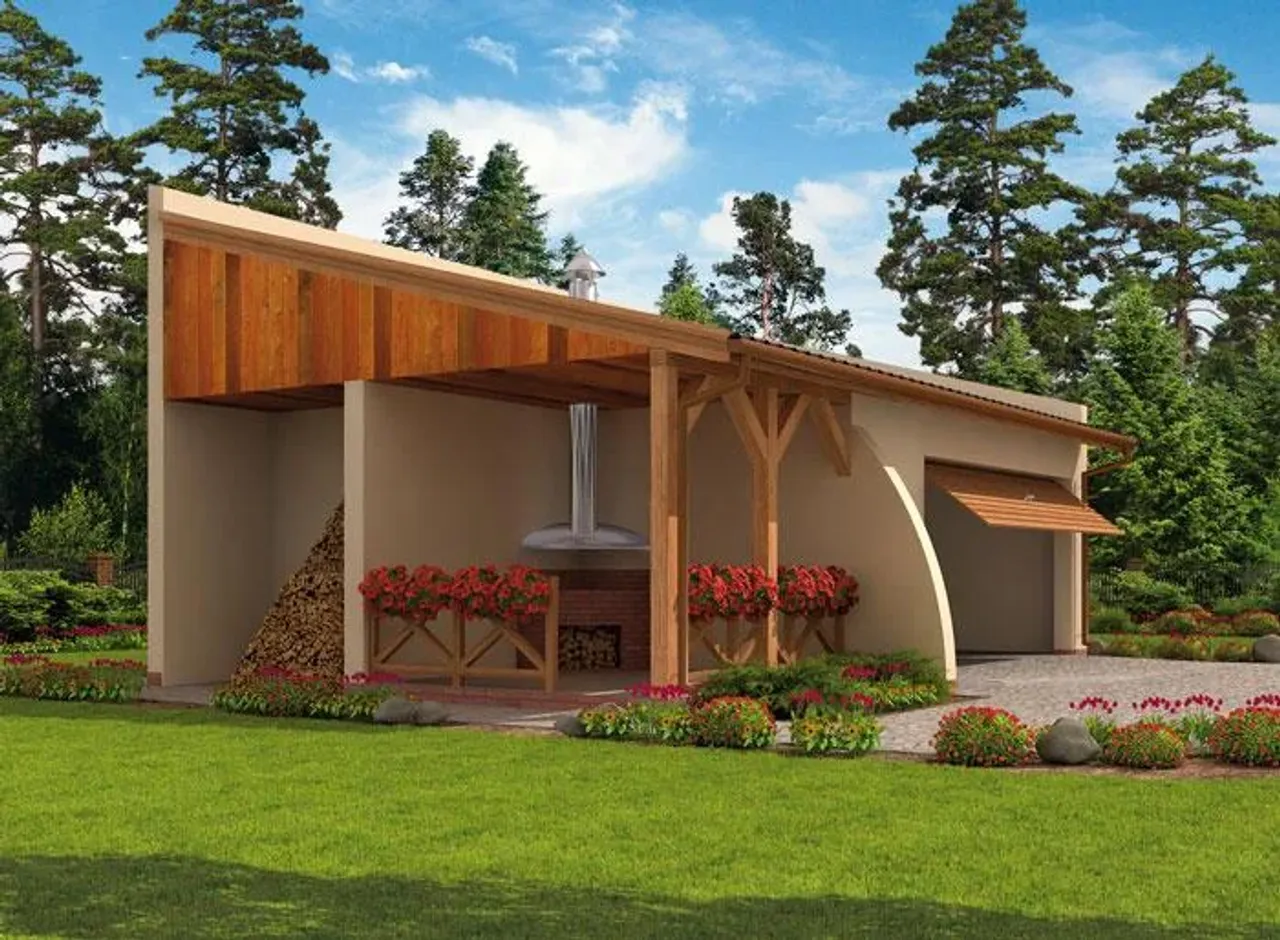 | Przestrzeń z pom. gospodarczym, z drewutnią, z wiatą/altaną |