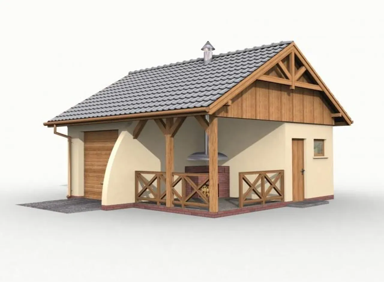 | Przestrzeń z pom. gospodarczym, z wiatą/altaną |