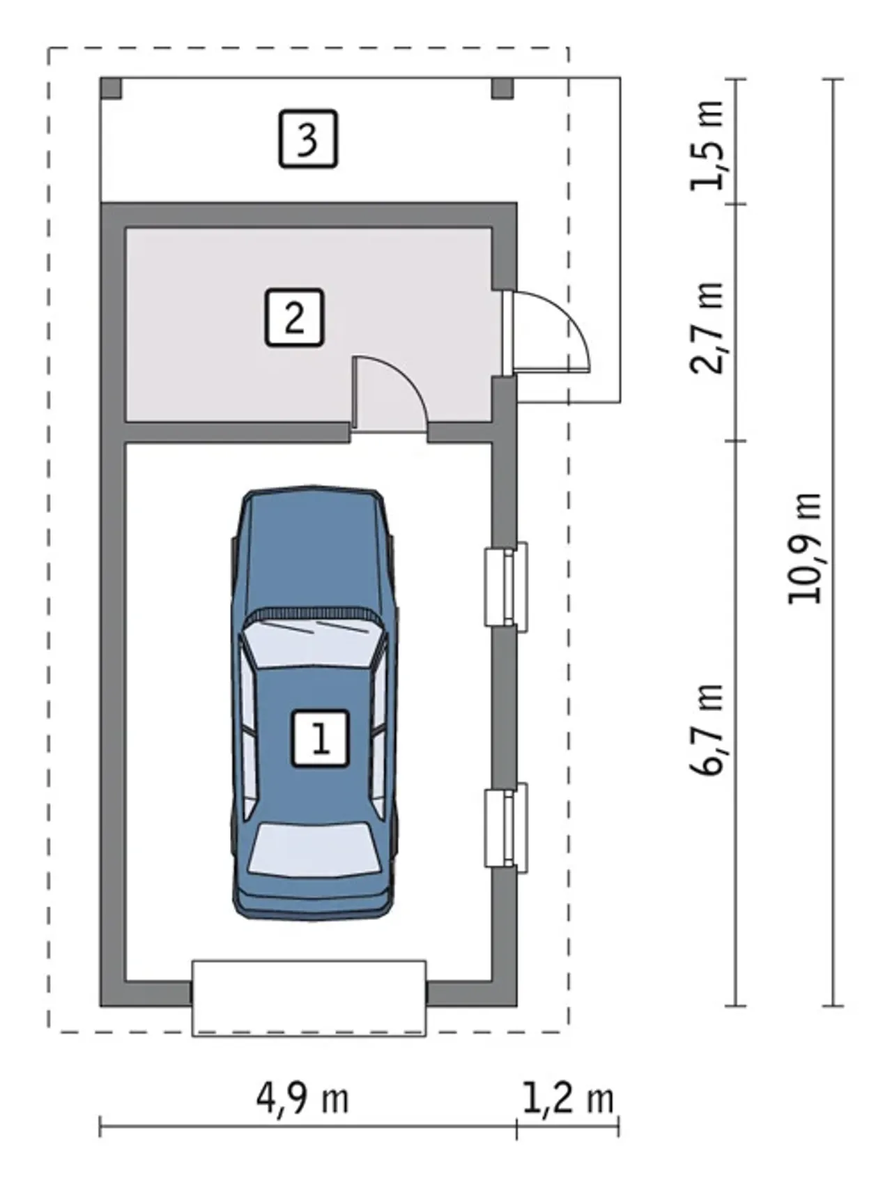 | Długość budynku 10.9 m |