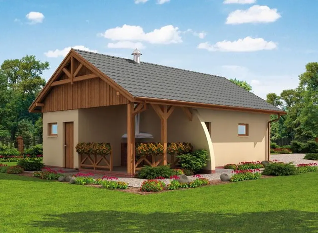 | Przestrzeń z pom. gospodarczym, z wiatą/altaną |