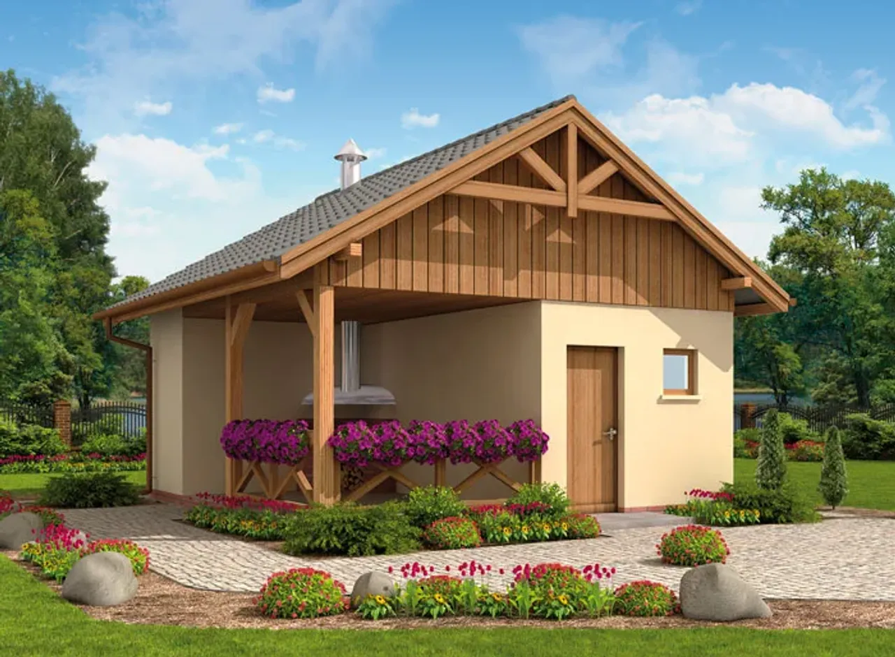 Wypełnij formularz i otrzymaj rysunki w pdf z dokładnymi wymiarami budynku i pomieszczeń (długość, szerokość, wysokość) dla projektu G44 Budynek Gospodarczy