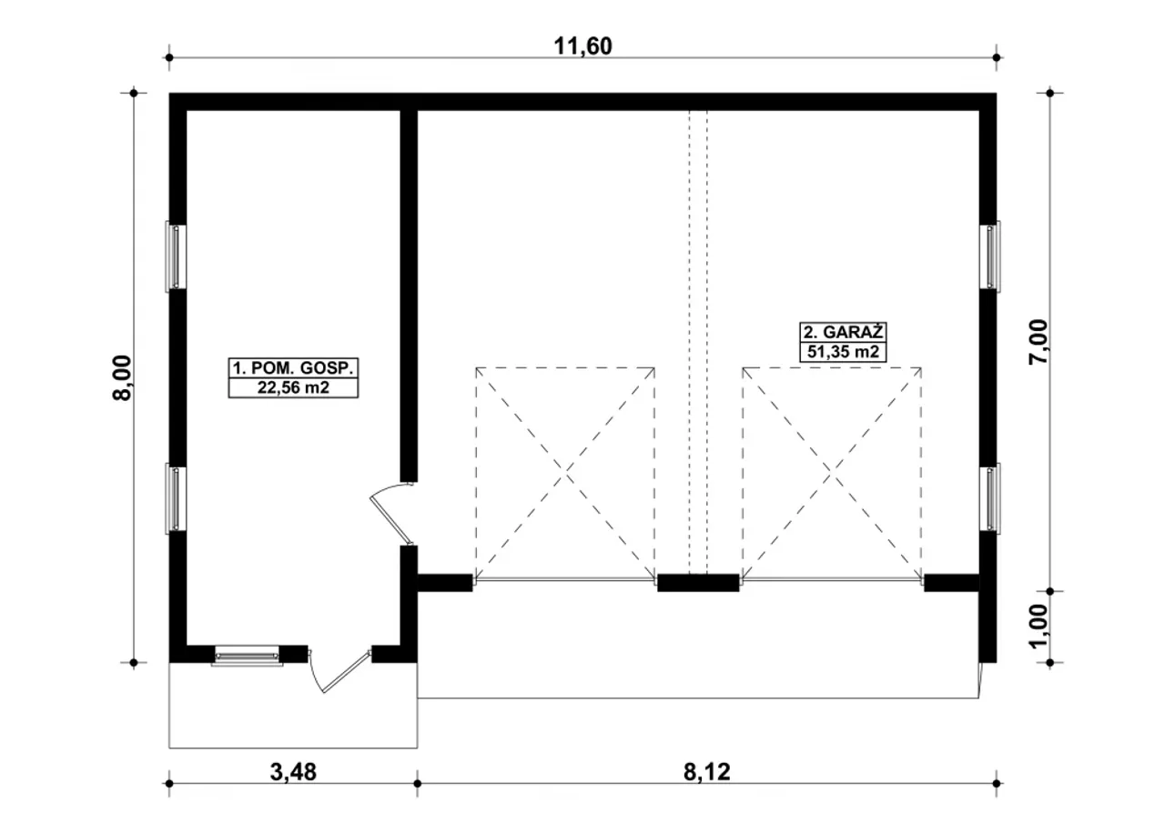 | Długość budynku 11.6 m |