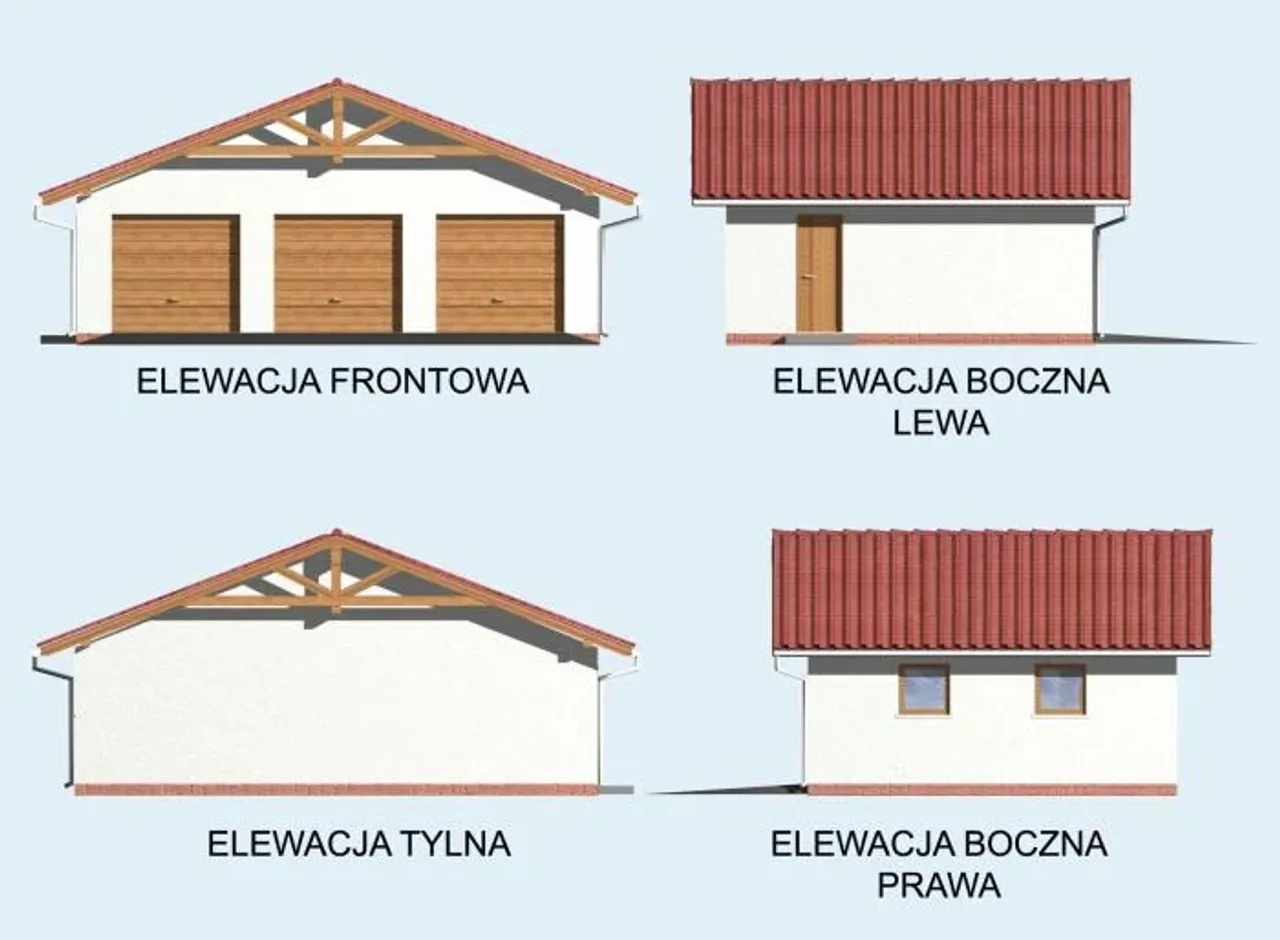 G5 szkielet drewnniany, garaż trzystanowiskowy