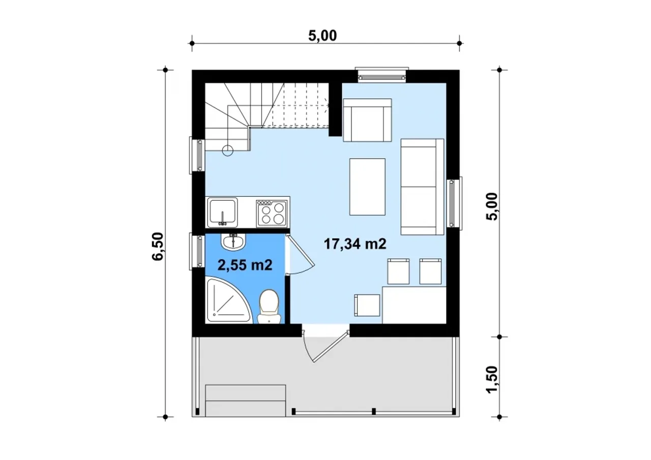 Wypełnij formularz i otrzymaj rysunki w pdf z dokładnymi wymiarami budynku i pomieszczeń (długość, szerokość, wysokość) dla projektu G51 - Budynek letniskowy
