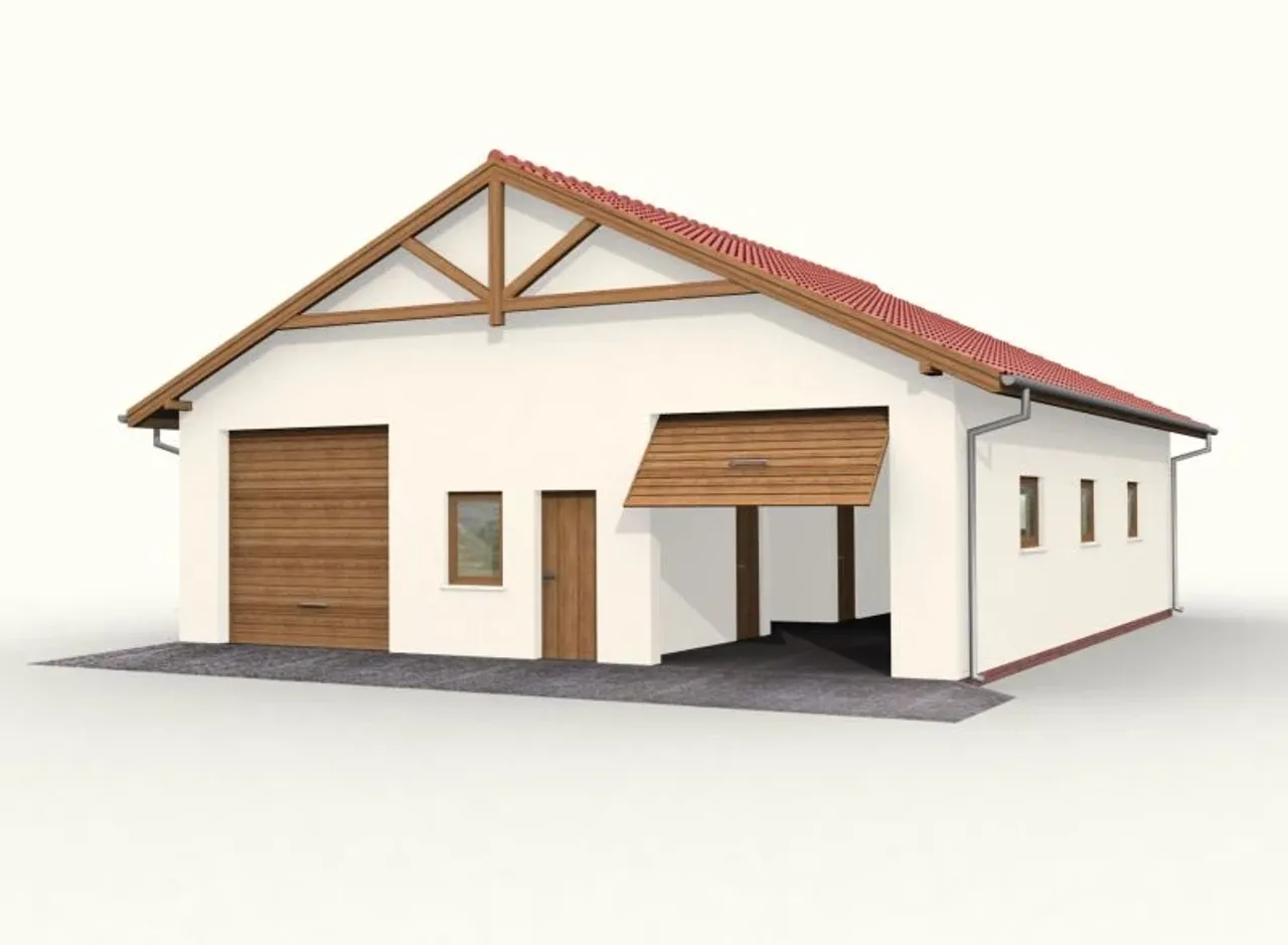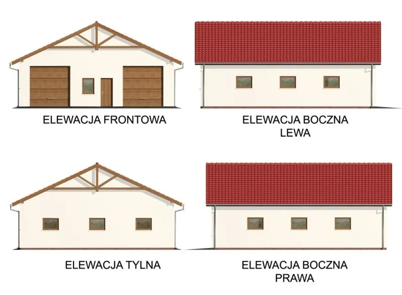 Wypełnij formularz i otrzymaj rysunki w pdf z dokładnymi wymiarami budynku i pomieszczeń (długość, szerokość, wysokość) dla projektu G51 szkielet drewniany, budynek garażowy