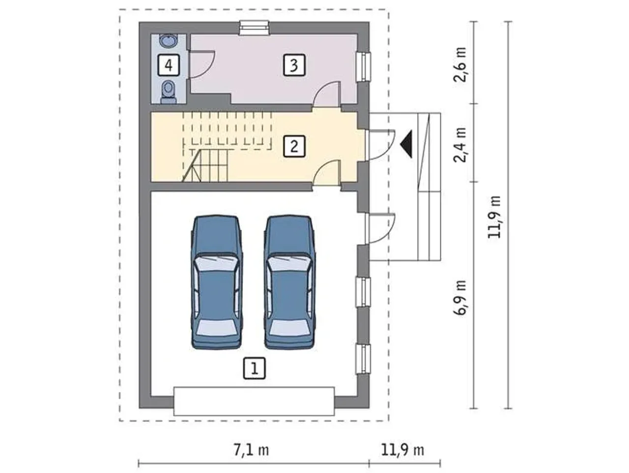 | Długość budynku 7.1 m |