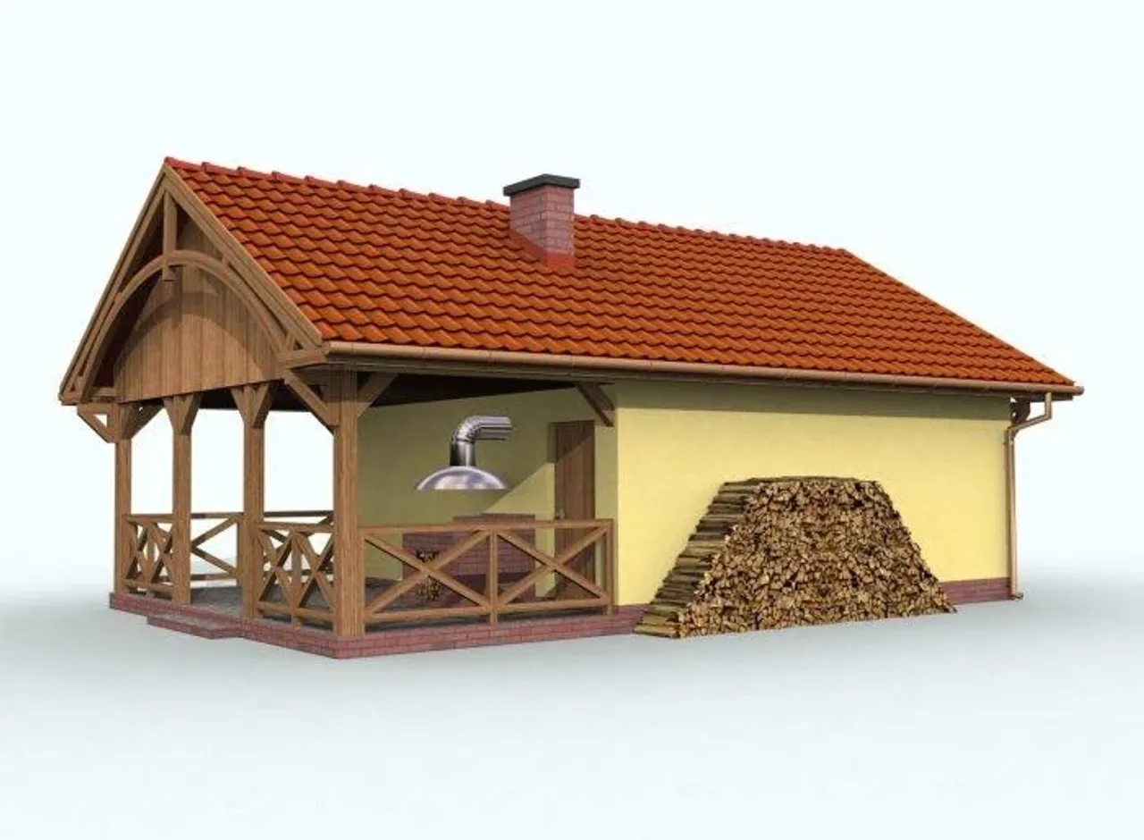 | Przestrzeń z pom. gospodarczym, z wiatą/altaną |