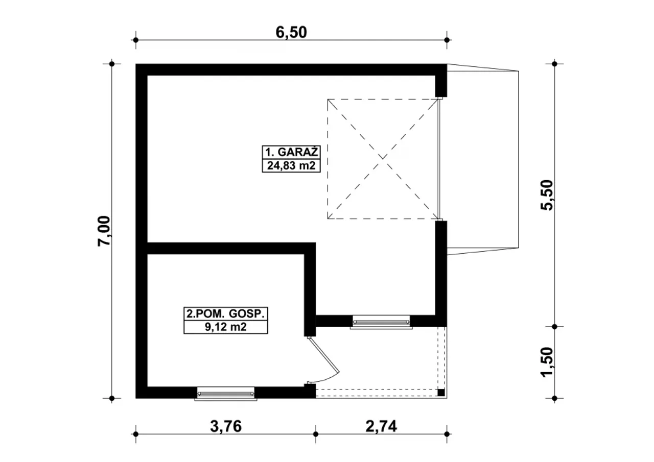 | Długość budynku 6.5 m |