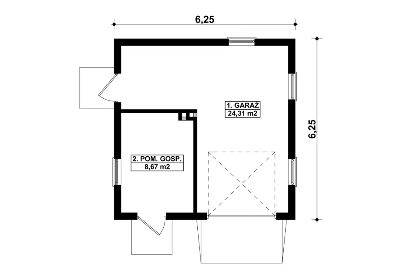 | Długość budynku 6.25 m |