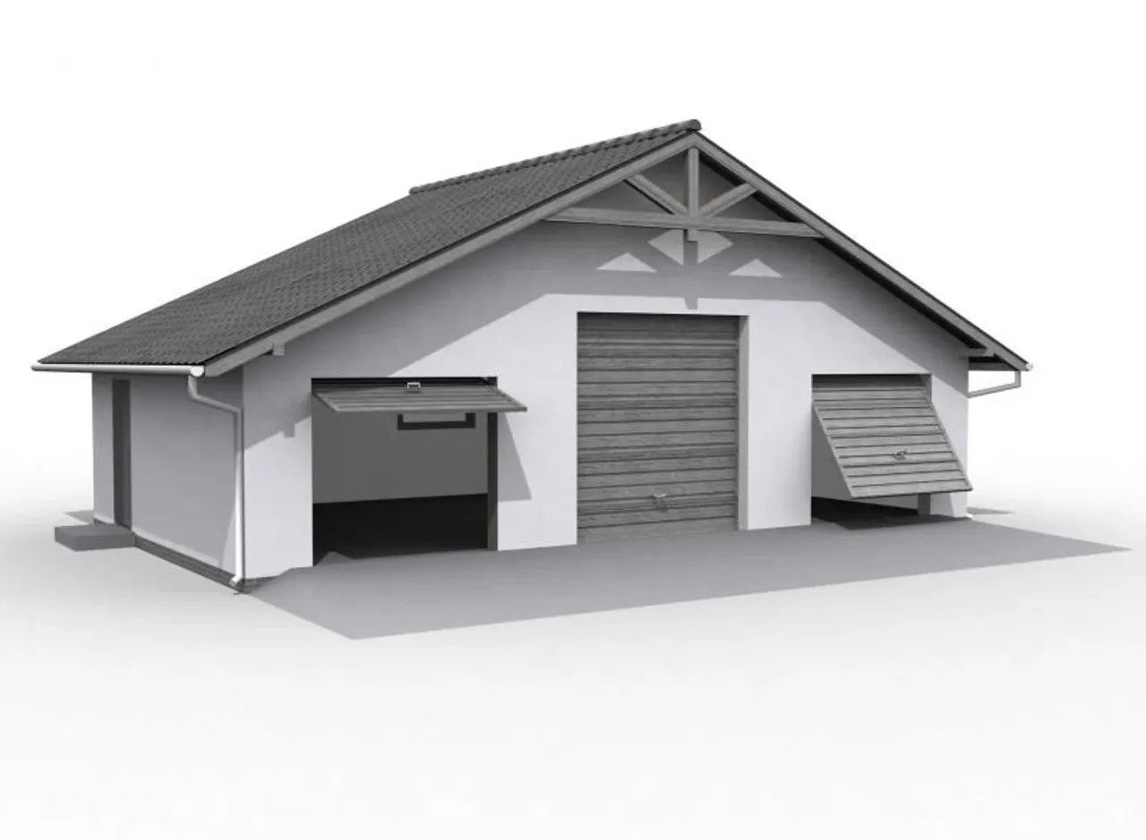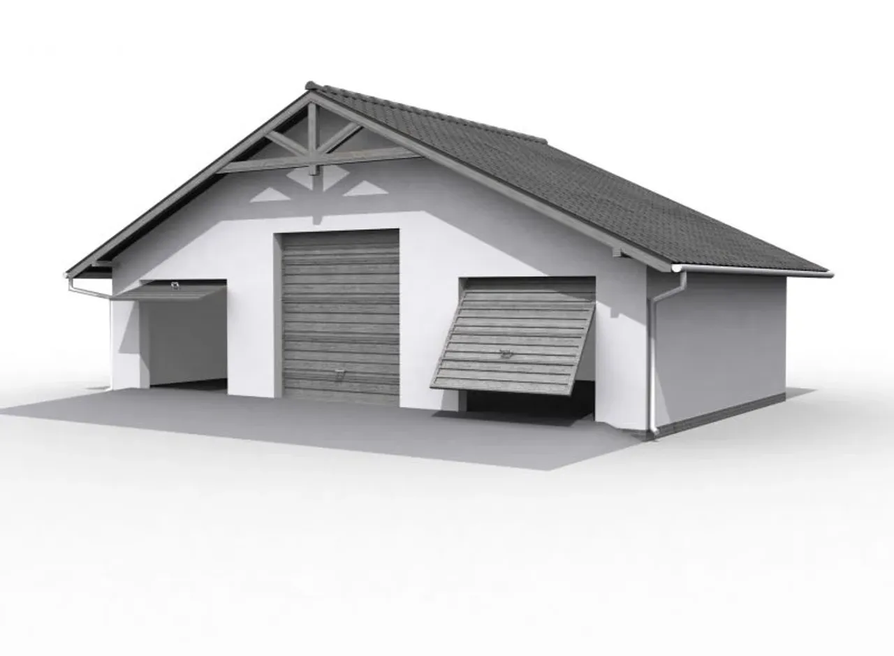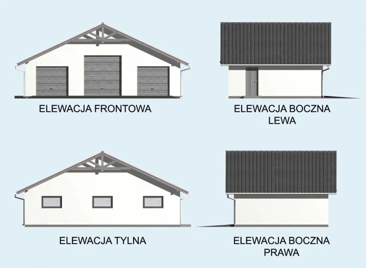 Wypełnij formularz i otrzymaj rysunki w pdf z dokładnymi wymiarami budynku i pomieszczeń (długość, szerokość, wysokość) dla projektu G7 szkielet drewniany, garaż trzystanowiskowy