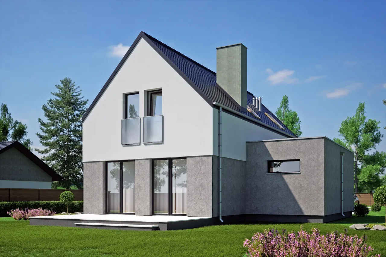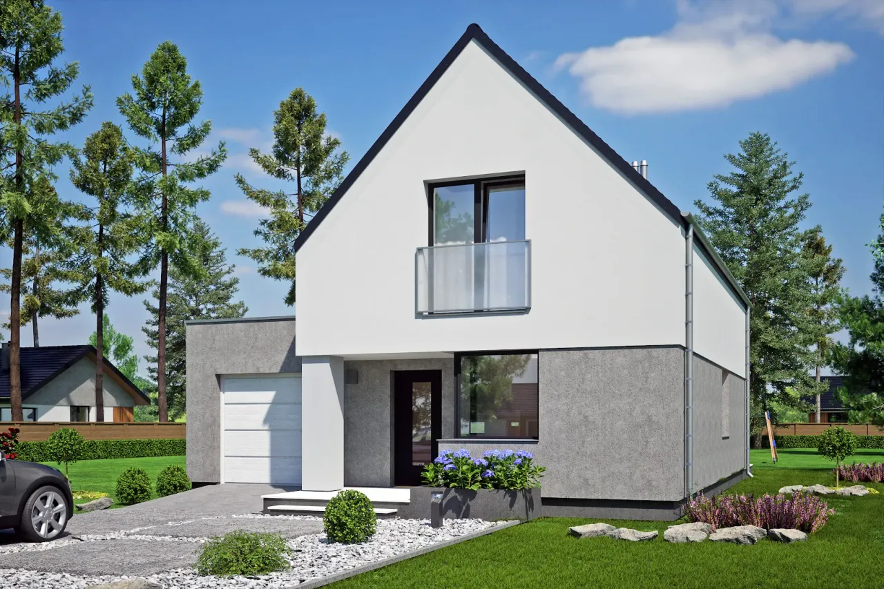 Projekt domu Gabi z garażem 1-st. A to propozycja dla tych, którzy poszukują funkcjonalnego i estetycznego rozwiązania dla swojej rodziny. Urokliwa bryła domu przyciąga uwagę stylowym wykończeniem, które sprawia, że całość prezentuje się wyjątkowo elegancko. Przemyślany układ pomieszczeń zapewnia wygodę i przestrzeń do życia rodzinnego. Z przodu znajduje się praktyczny garaż, co jest istotnym atutem dla osób zmotoryzowanych. Pięknie zaaranżowana część dzienna z dużym salonem daje możliwość stworzenia przytulnego miejsca do codziennego relaksu. Ten projekt to doskonały wybór dla tych, którzy cenią sobie nowoczesne spojrzenie na klasyczny dom rodzinny.