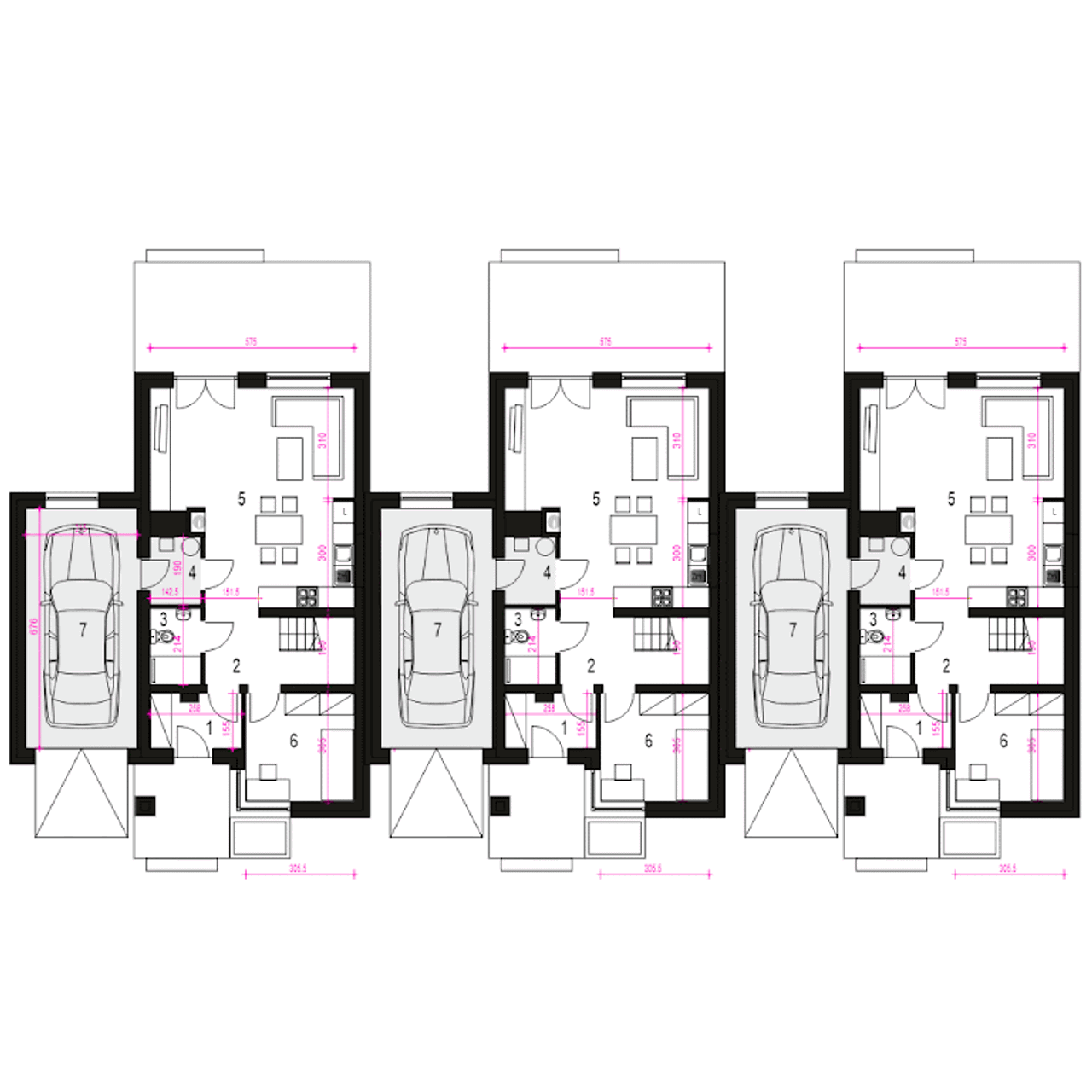 Wypełnij formularz i otrzymaj rysunki w pdf z dokładnymi wymiarami budynku i pomieszczeń (długość, szerokość, wysokość) dla projektu Gabi z garażem 1-st. A