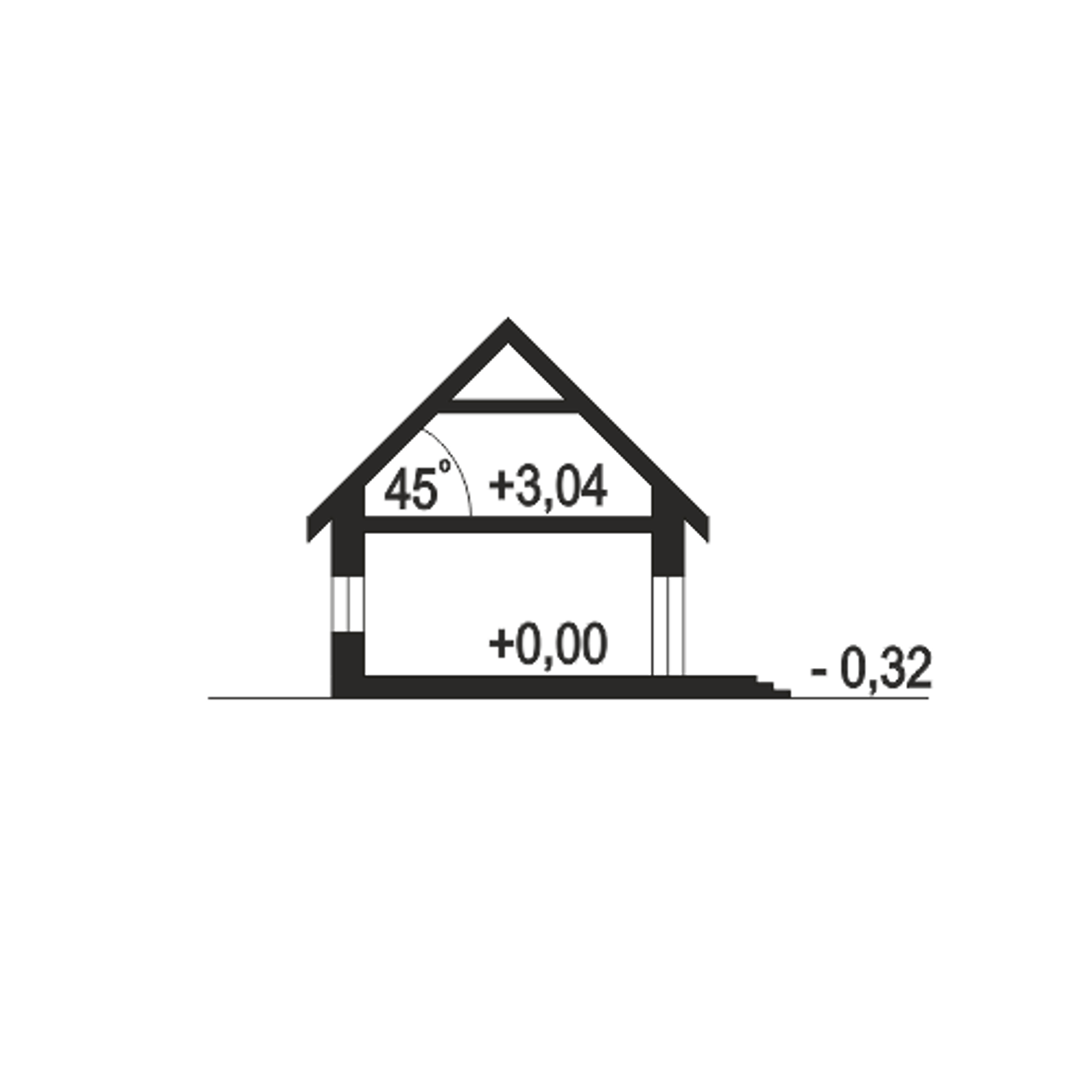 Kąt nachylenia dachu 45 ° |