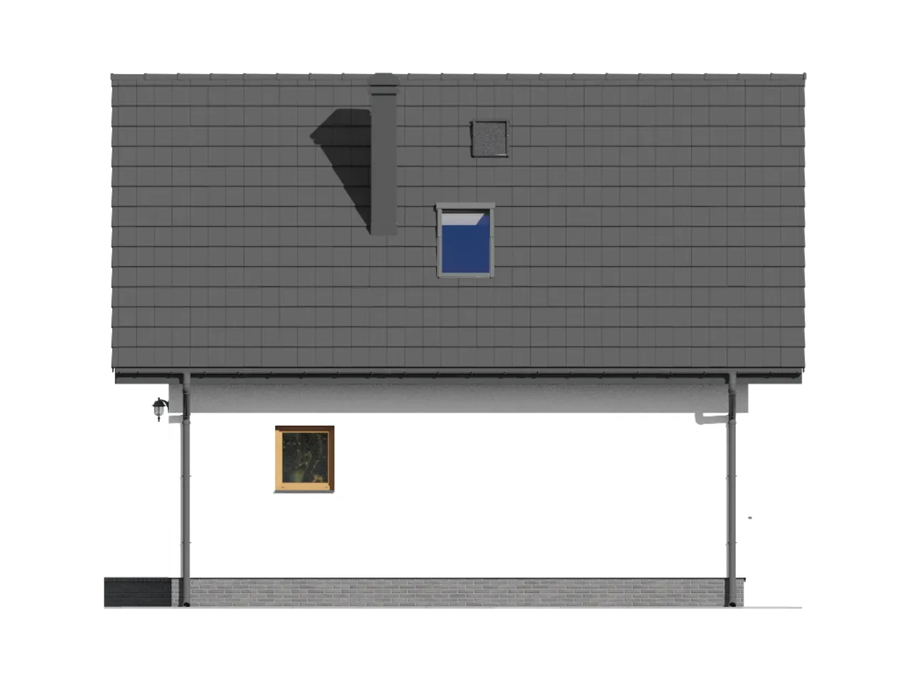 Dom wybudowany na podstawie projektu Gaik 45m wyróżnia się minimalistyczną, prostą bryłą, co pozwala na optymalne wykorzystanie przestrzeni działki i łatwiejsze dopasowanie do warunków zabudowy. Równoległa do drogi kalenica zwiększa atrakcyjność elewacji frontowej, a zastosowana na dachu dachówka ceramiczna zachwyca trwałością oraz odpornością na warunki atmosferyczne.