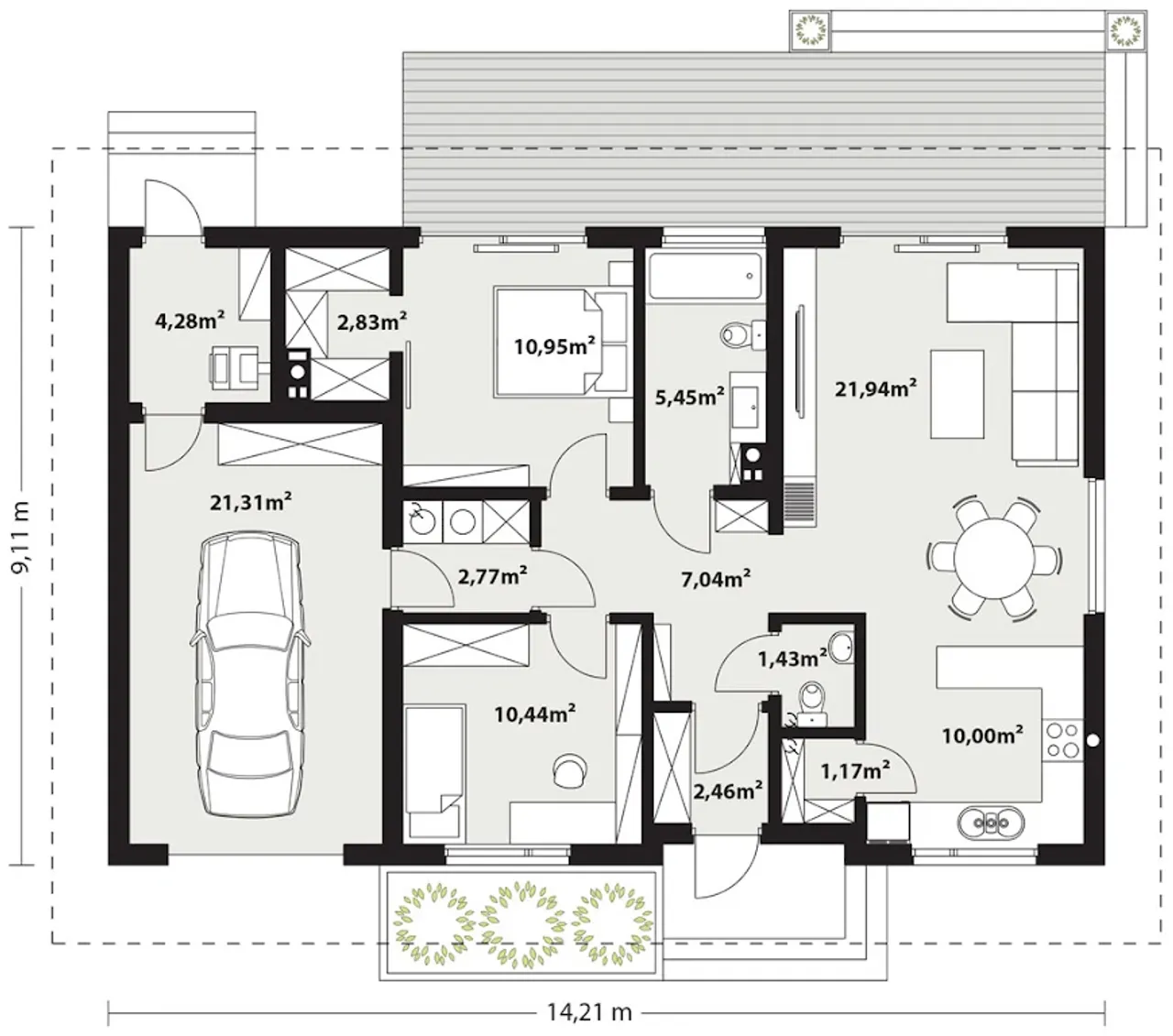 Wypełnij formularz i otrzymaj rysunki w pdf z dokładnymi wymiarami budynku i pomieszczeń (długość, szerokość, wysokość) dla projektu Gaja 4 drewniana