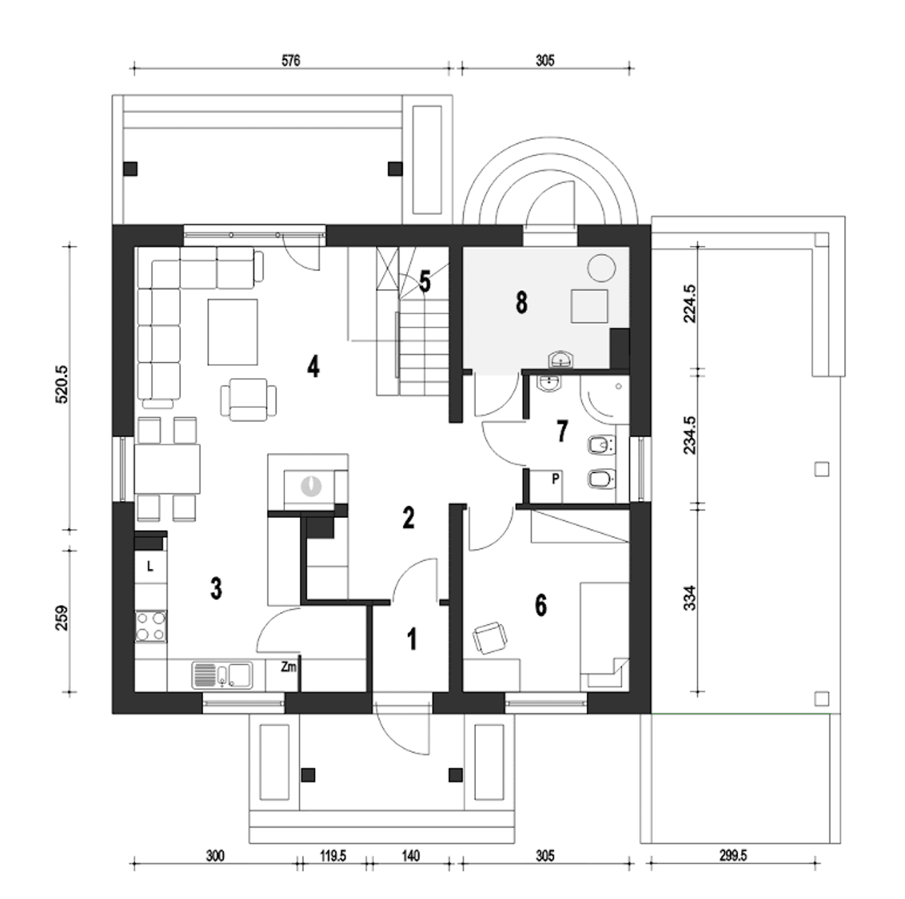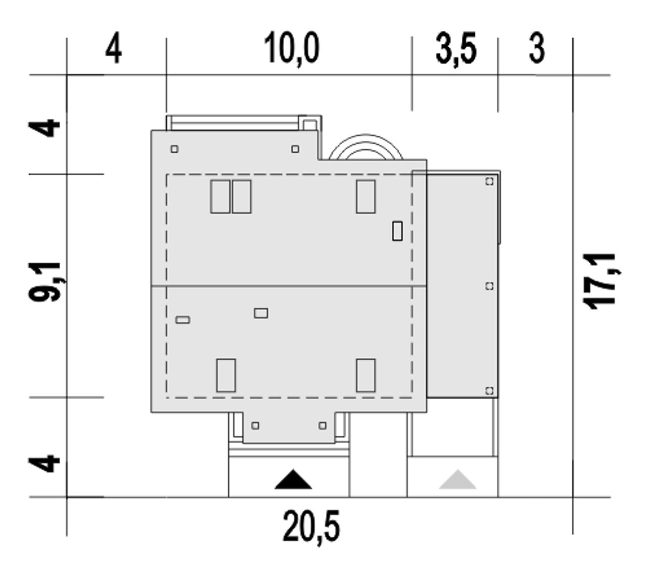 Wypełnij formularz i otrzymaj rysunki w pdf z dokładnymi wymiarami budynku i pomieszczeń (długość, szerokość, wysokość) dla projektu Gajówka z wiatą A1
