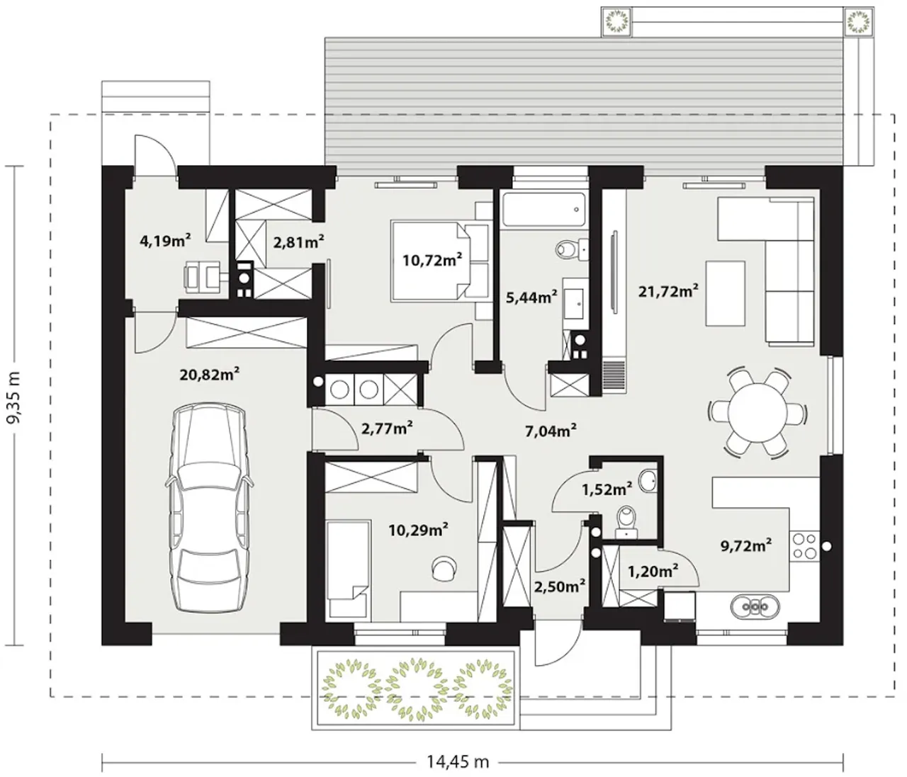 parterowy Wypełnij formularz i otrzymaj rysunki w pdf z dokładnymi wymiarami budynku i pomieszczeń (długość, szerokość, wysokość) dla projektu Galia drewniana