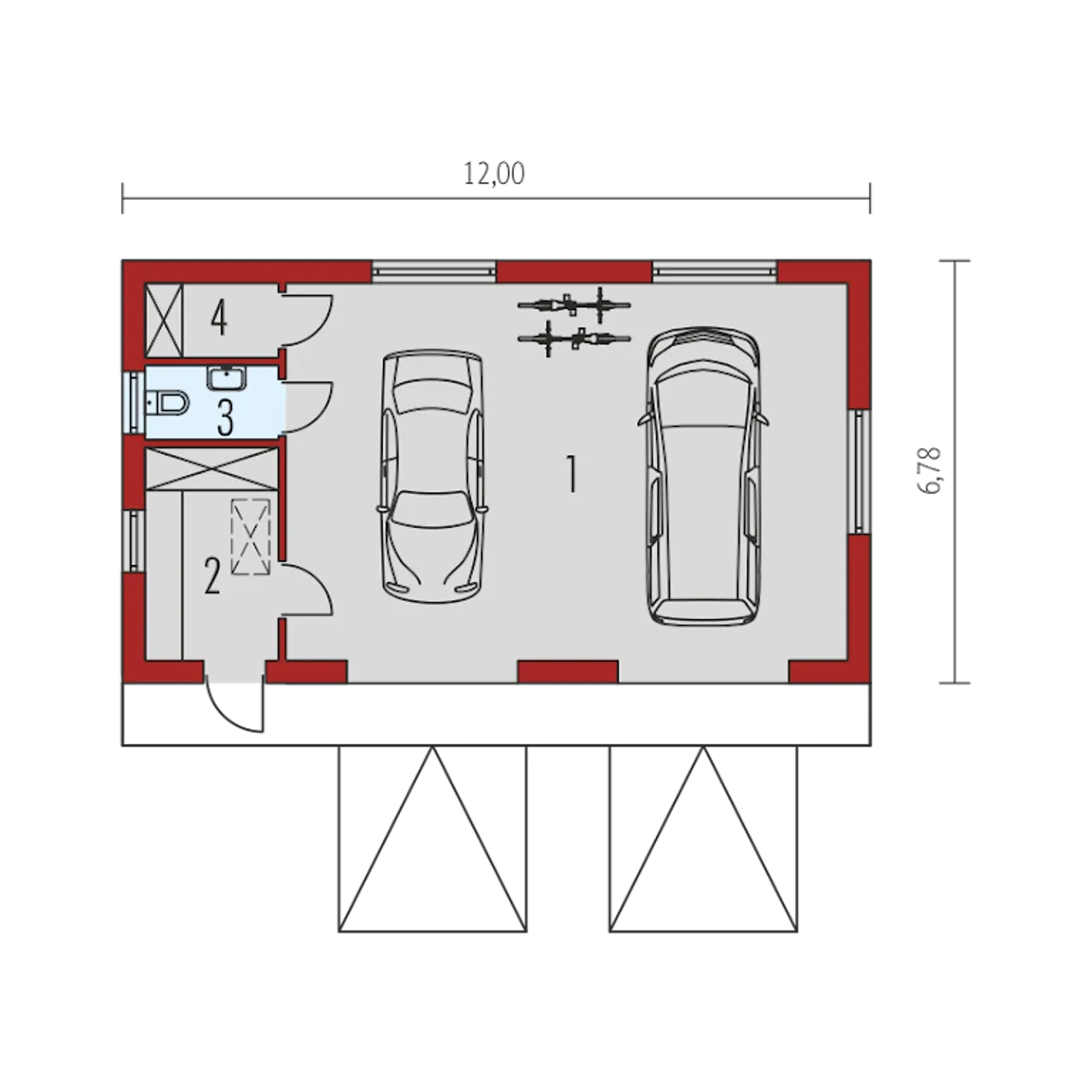 Wypełnij formularz i otrzymaj rysunki w pdf z dokładnymi wymiarami budynku i pomieszczeń (długość, szerokość, wysokość) dla projektu Garaż G22 01