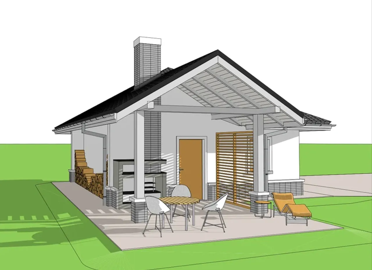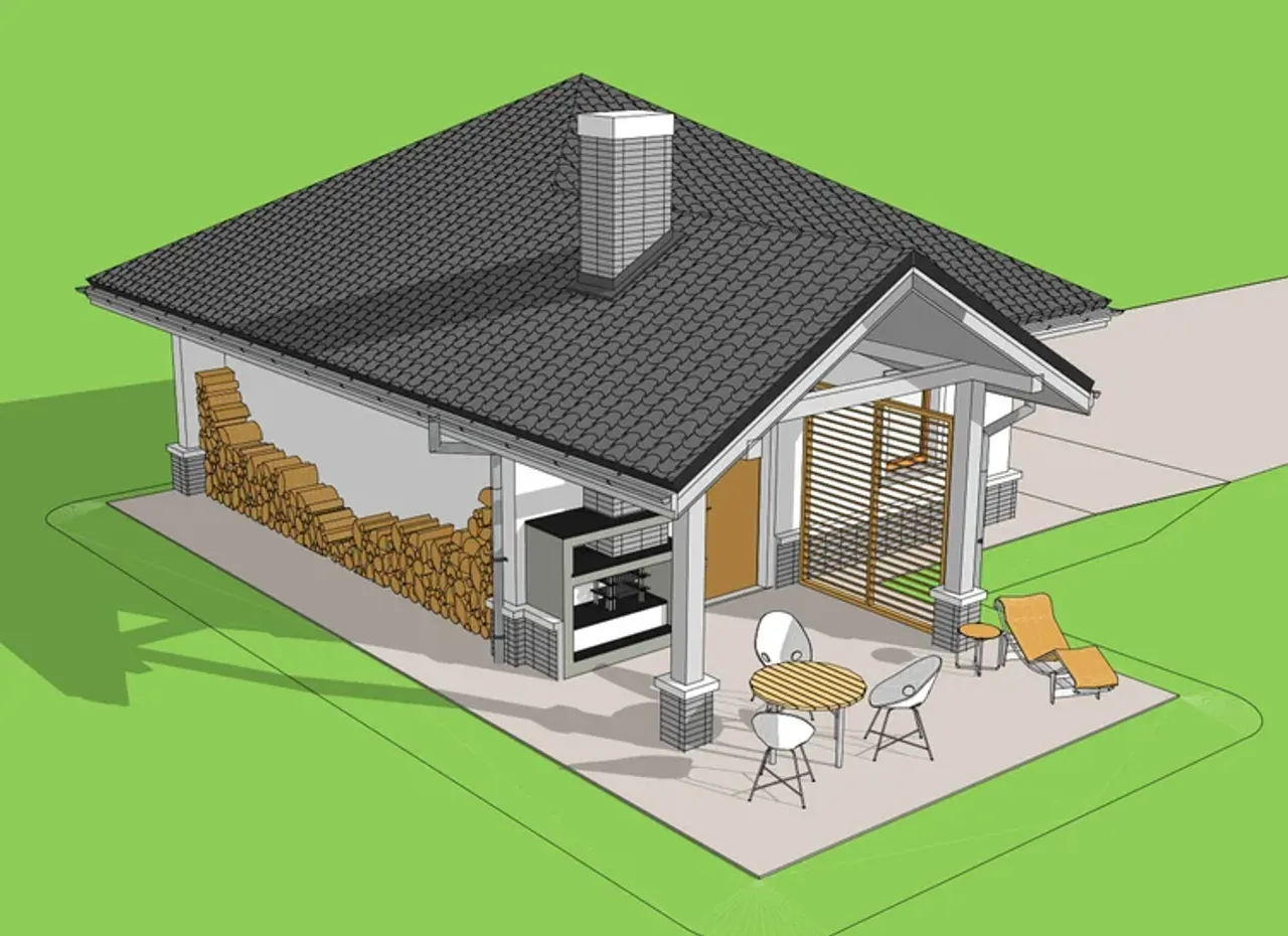 | Przestrzeń z drewutnią, z wiatą/altaną |