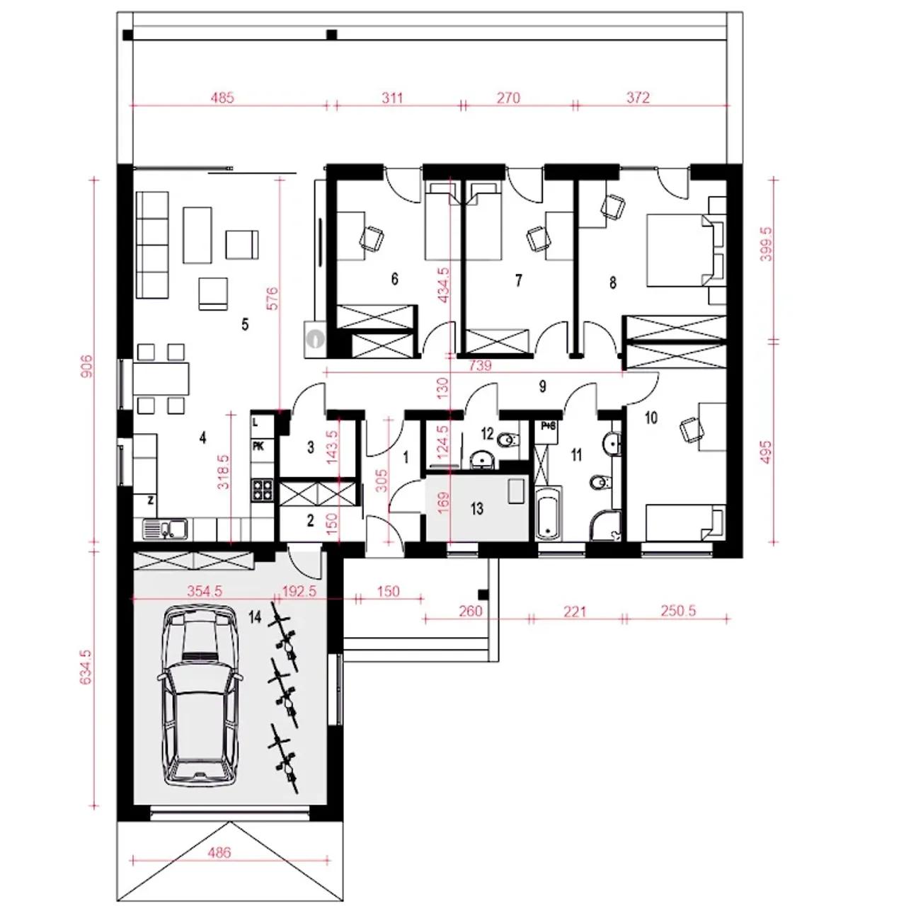 Parametry Techniczne gotowego projektu domu Gąska IV z garażem 1-st. A