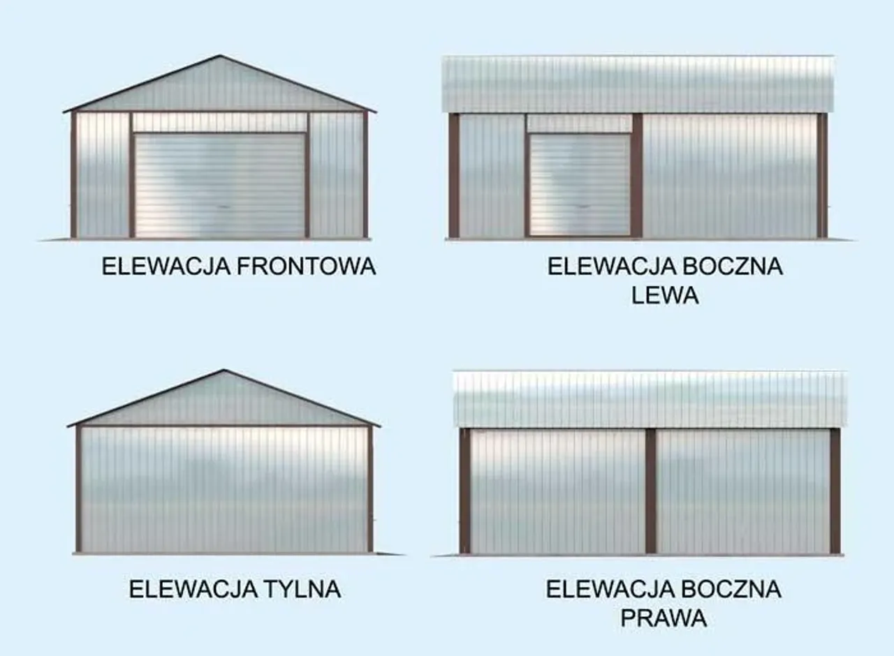 Rzuty gotowego projektu budynku GB20 Garaż Blaszany