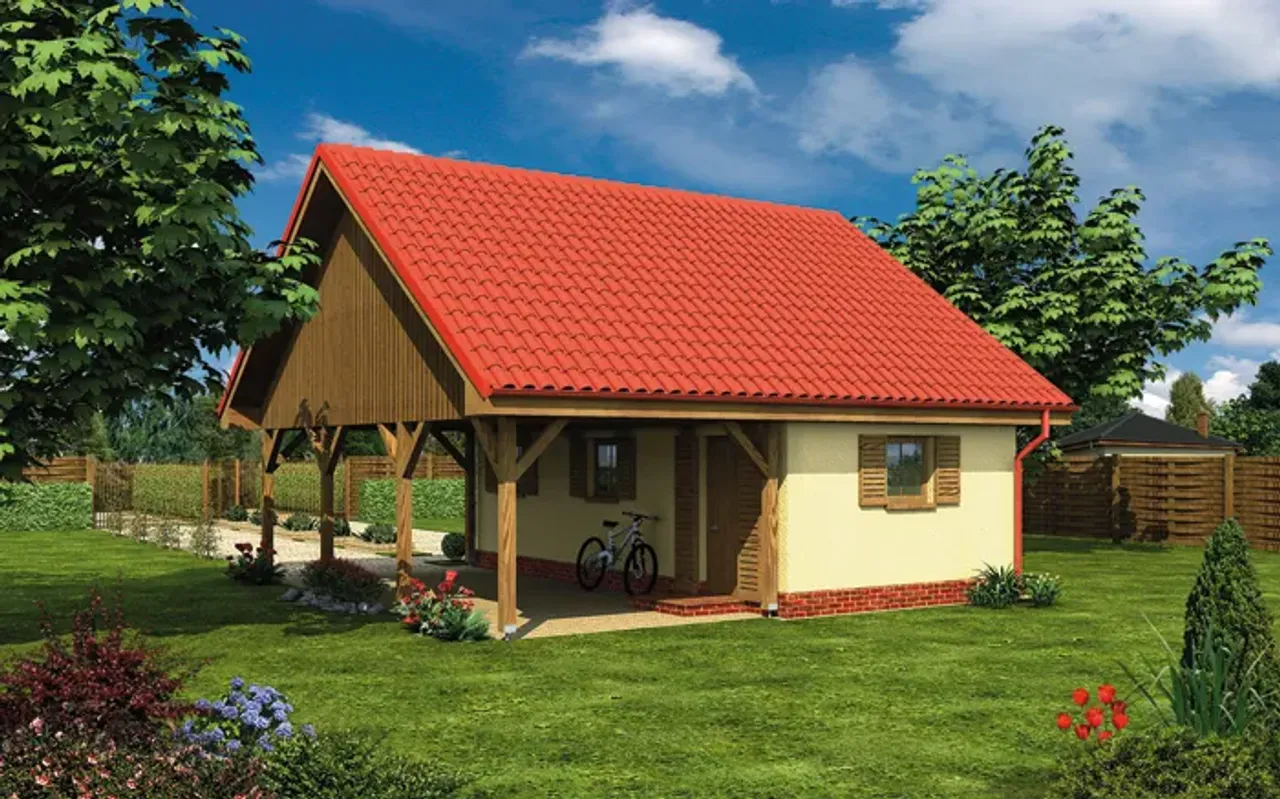 | Przestrzeń z pom. gospodarczym, z wiatą/altaną |