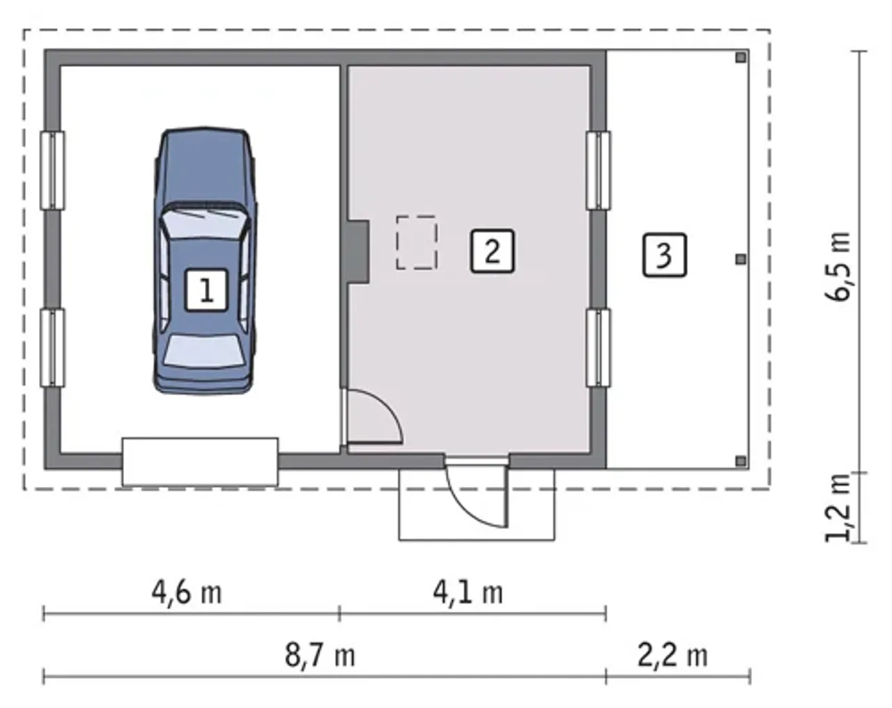 | Przestrzeń z pom. gospodarczym, z wiatą/altaną |