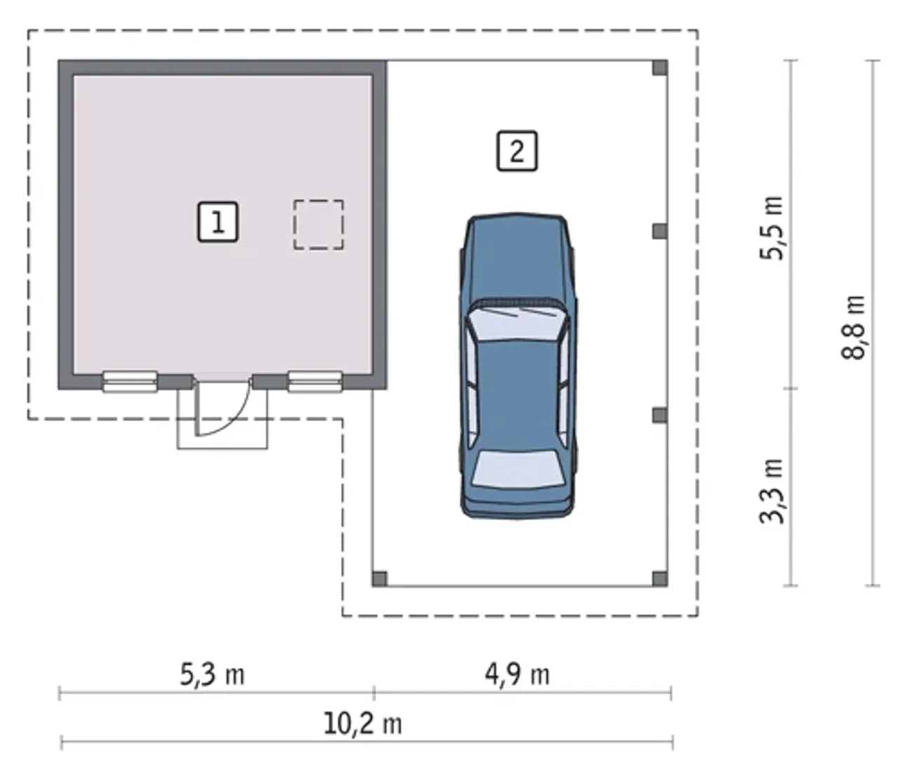 | Długość budynku 10.2 m |