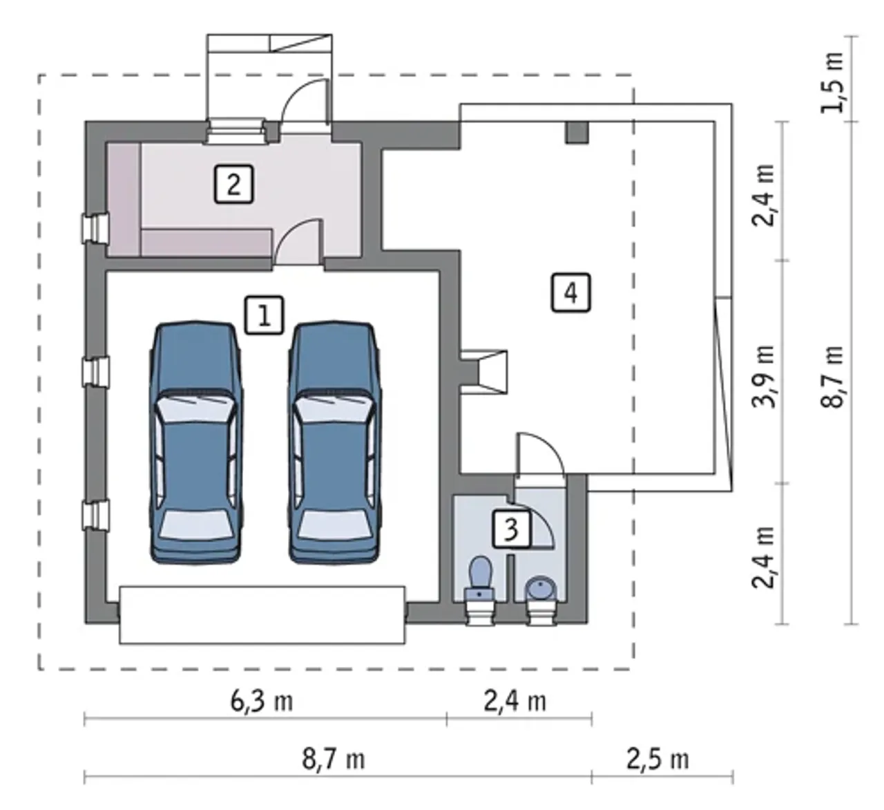 | Przestrzeń z pom. gospodarczym, z drewutnią |