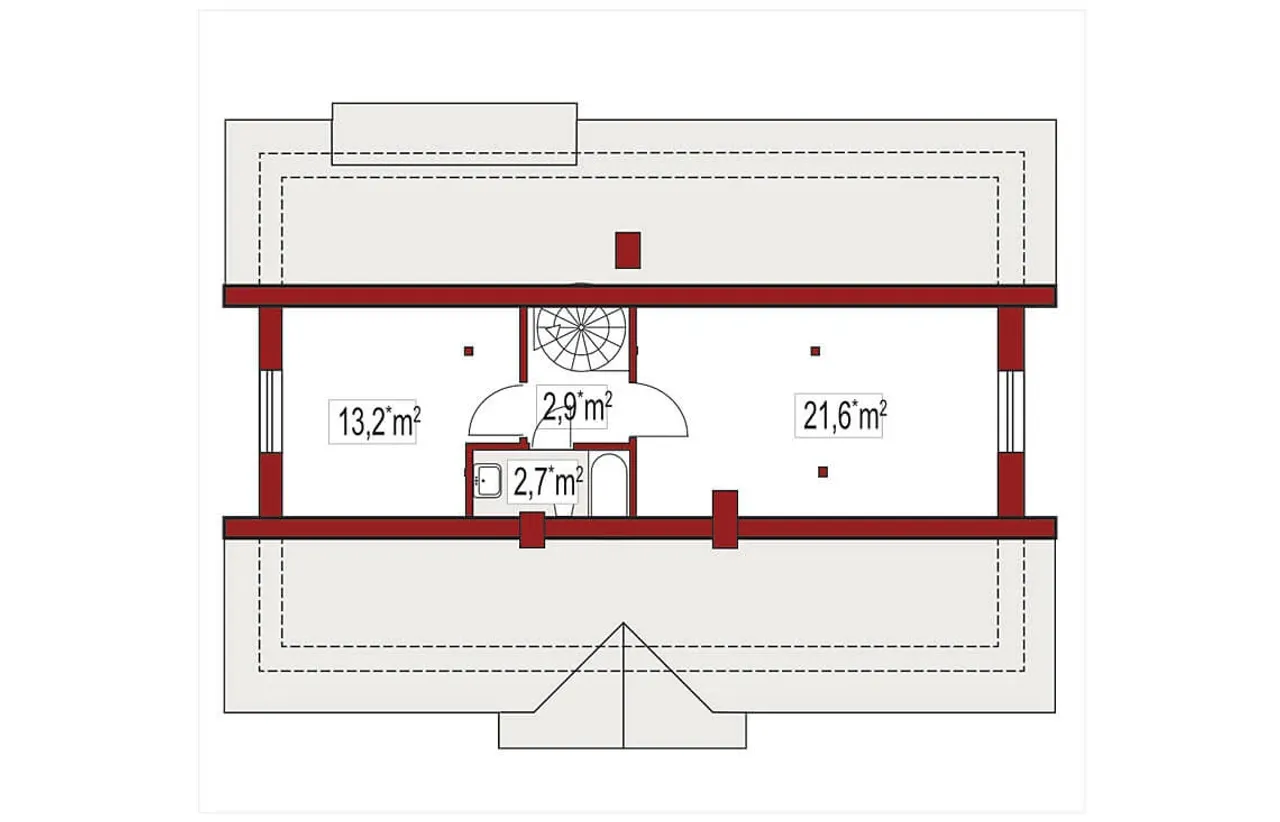Wypełnij formularz i otrzymaj rysunki w pdf z dokładnymi wymiarami budynku i pomieszczeń (długość, szerokość, wysokość) dla projektu Gienia C z poddaszem do adaptacji bez garażu