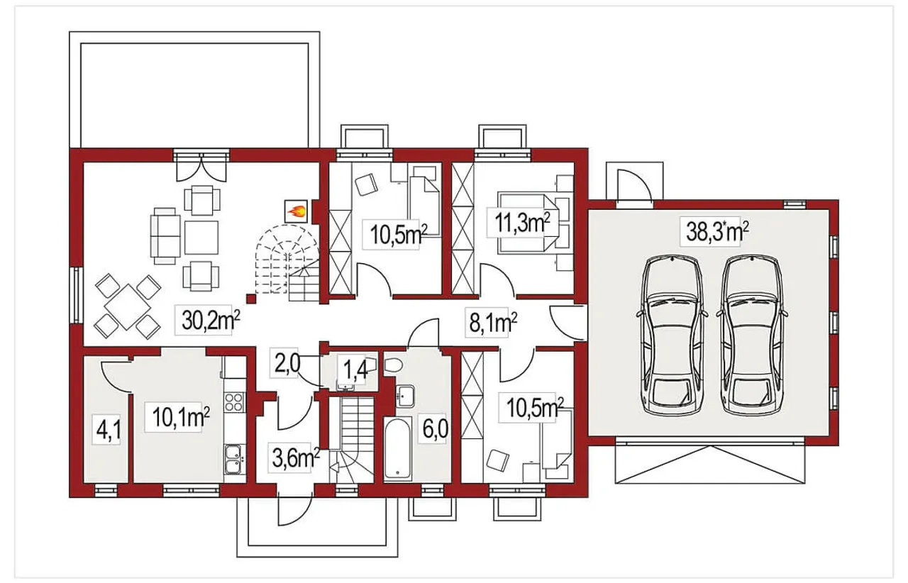 Wypełnij formularz i otrzymaj rysunki w pdf z dokładnymi wymiarami budynku i pomieszczeń (długość, szerokość, wysokość) dla projektu Gienia F z poddaszem do adaptacji z garażem dwustanowiskowym