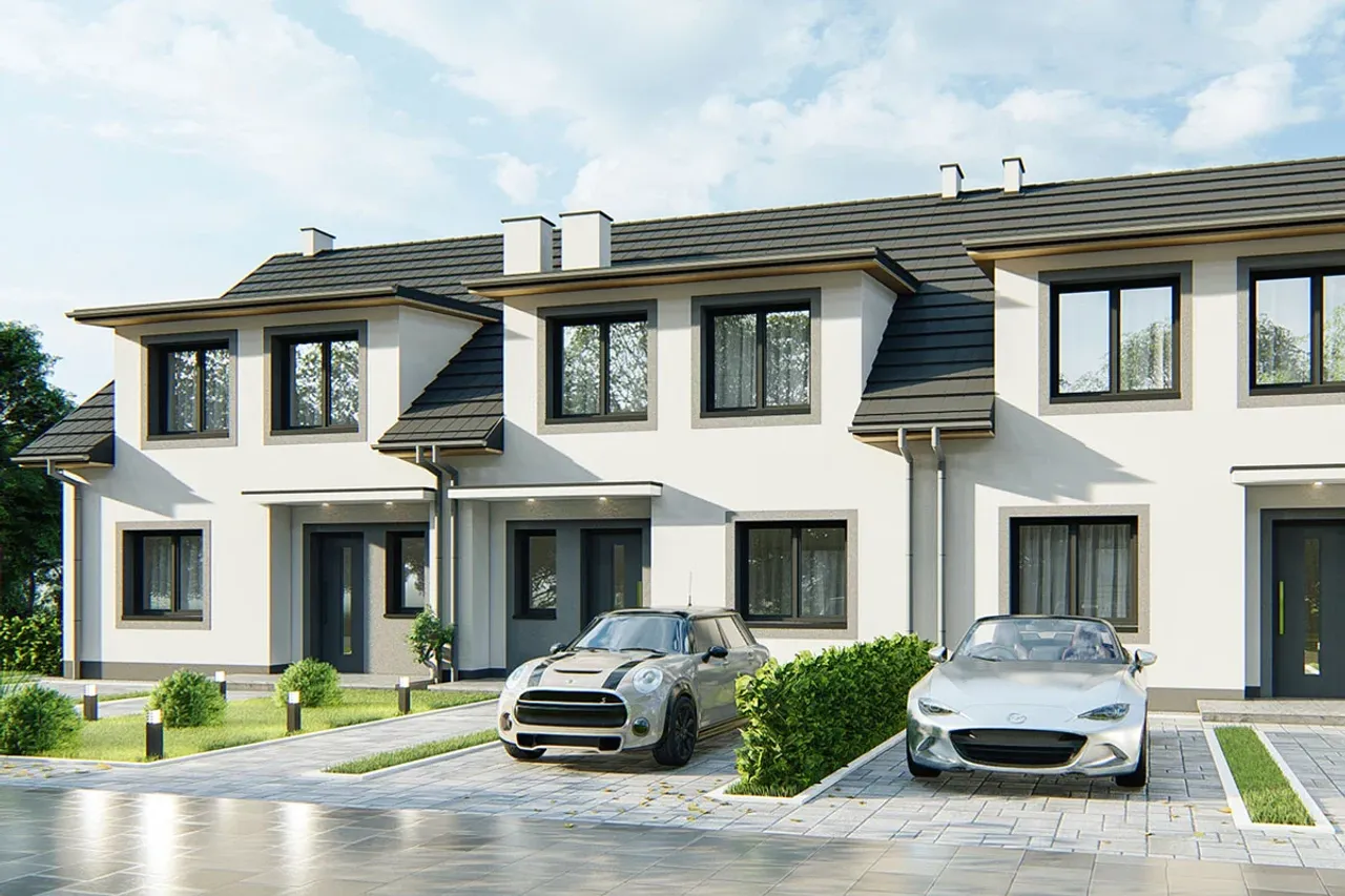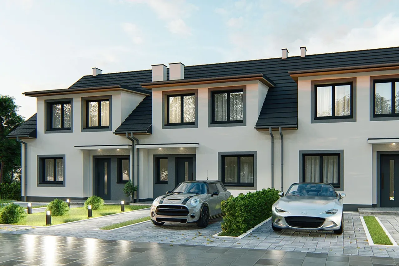 Projekt domu Gilbert 5 - segment lewy przyciąga uwagę nowoczesnym designem i przemyślanym rozkładem pomieszczeń, co sprawia, że jest atrakcyjny dla rodzin ceniących sobie komfort i funkcjonalność. Dzięki swojej kompaktowej budowie doskonale wpisze się w mniejsze działki, co jest istotne dla osób z ograniczoną przestrzenią. Duże przeszklenia zapewniają doskonałe doświetlenie wnętrz, co jest ważne dla komfortu użytkowania. Projekt ten uwzględnia również wygodną strefę dzienną na parterze, co pozwala na łatwe prowadzenie życia rodzinnego i towarzyskiego. Dodatkowo, zakładając oddzielne sypialnie na wyższej kondygnacji, zapewnia odpowiednią prywatność dla wszystkich domowników. Planując sferę domowego życia, warto również rozważyć, jak takie rozwiązane wpłynie na codzienną organizację i funkcjonalność domu.