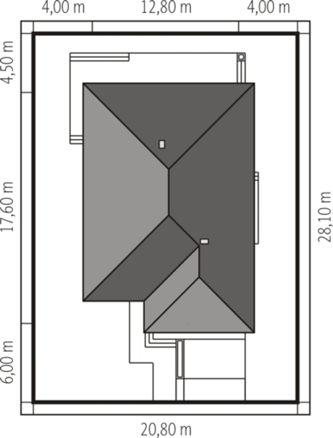 Wypełnij formularz i otrzymaj rysunki w pdf z dokładnymi wymiarami budynku i pomieszczeń (długość, szerokość, wysokość) dla projektu Glen II G1 Leca® Dom