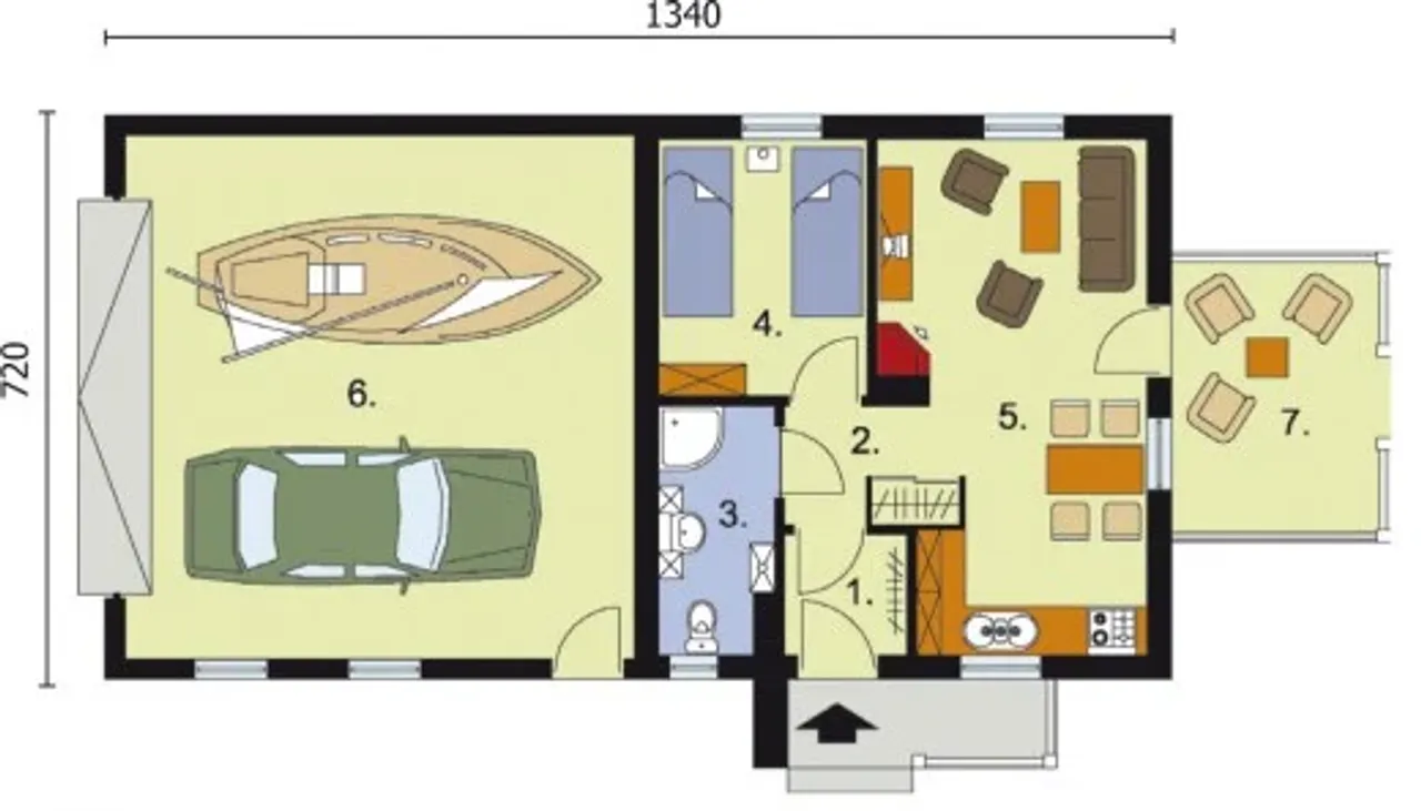 Wypełnij formularz i otrzymaj rysunki w pdf z dokładnymi wymiarami budynku i pomieszczeń (długość, szerokość, wysokość) dla projektu Gm2 Budynek Gospodarczo-garażowy