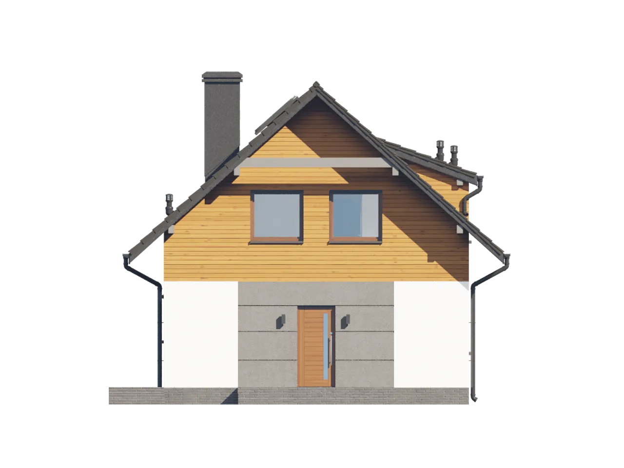 Kodowana w detalach nowoczesność spotyka się tu z solidnością konstrukcji murowanej. Przemyślany rozkład parteru i poddasza pozwala na komfortowe korzystanie z każdego metra przestrzeni - zarówno we wnętrzach, jak i na otwartym tarasie.