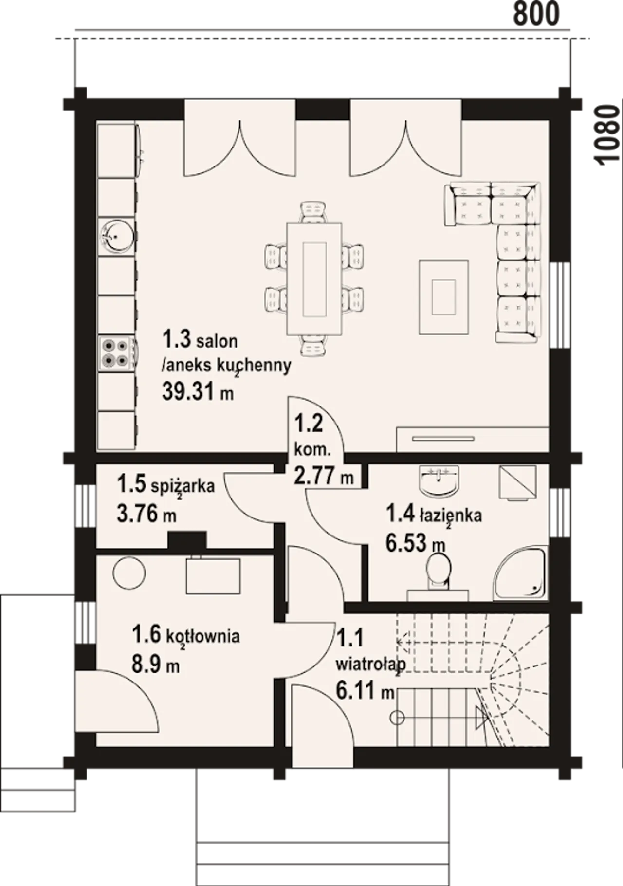 - opisu architektonicznego zawierającego m.in. opis przyjętych rozwiązań, zestawienia powierzchni (użytkowej, zabudowy, netto), kubatury oraz powierzchni poszczególnych pomieszczeń