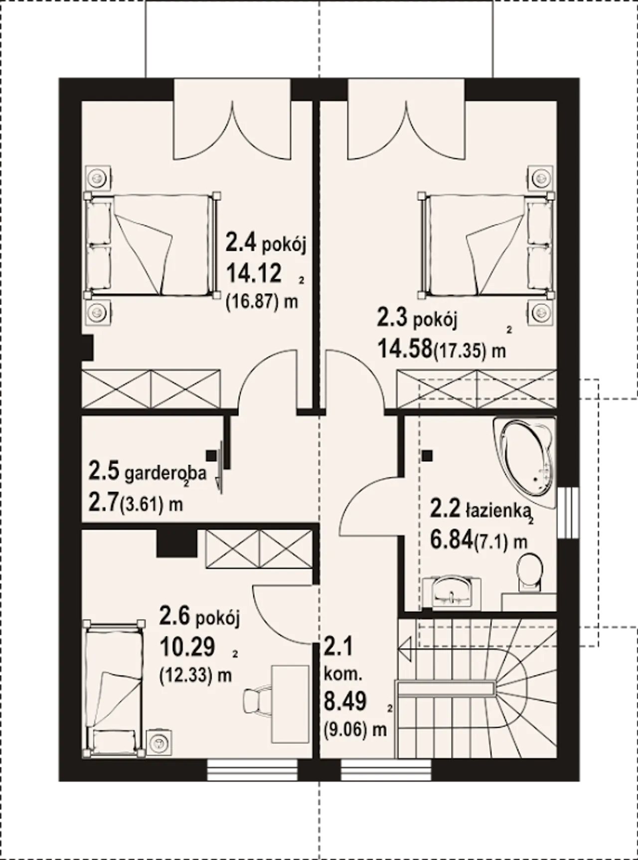 Kupując projekt w technologii murowanej powinieneś budować dom murowany. Zupełna zmiana technologii na szkieletową wymaga przeprojektowania całego budynku ( zmieniają się obciążenia, fundamenty, konstrukcja dachu). Wydamy zgodę na takie przeprojektowanie jednak wiążę się to z dużymi kosztami. Istnieją firmy wykonawcze, które podejmują się zmiany technologii budowy bezpłatnie przy skorzystaniu z ich usług wykonawczych. Zdarza się, że pracownia architektoniczna przygotowuje warianty konkretnego projektu przewidując także inne technologie. Prosimy o sprawdzenie czy istnieje poszukiwana wersja projektu, w zakładce - warianty projektu.