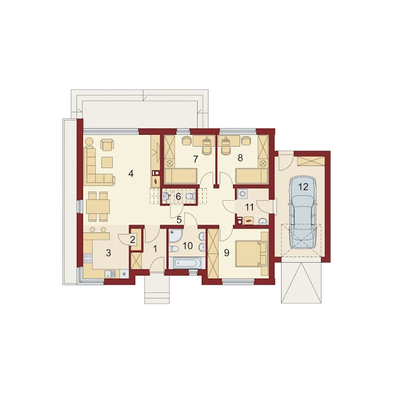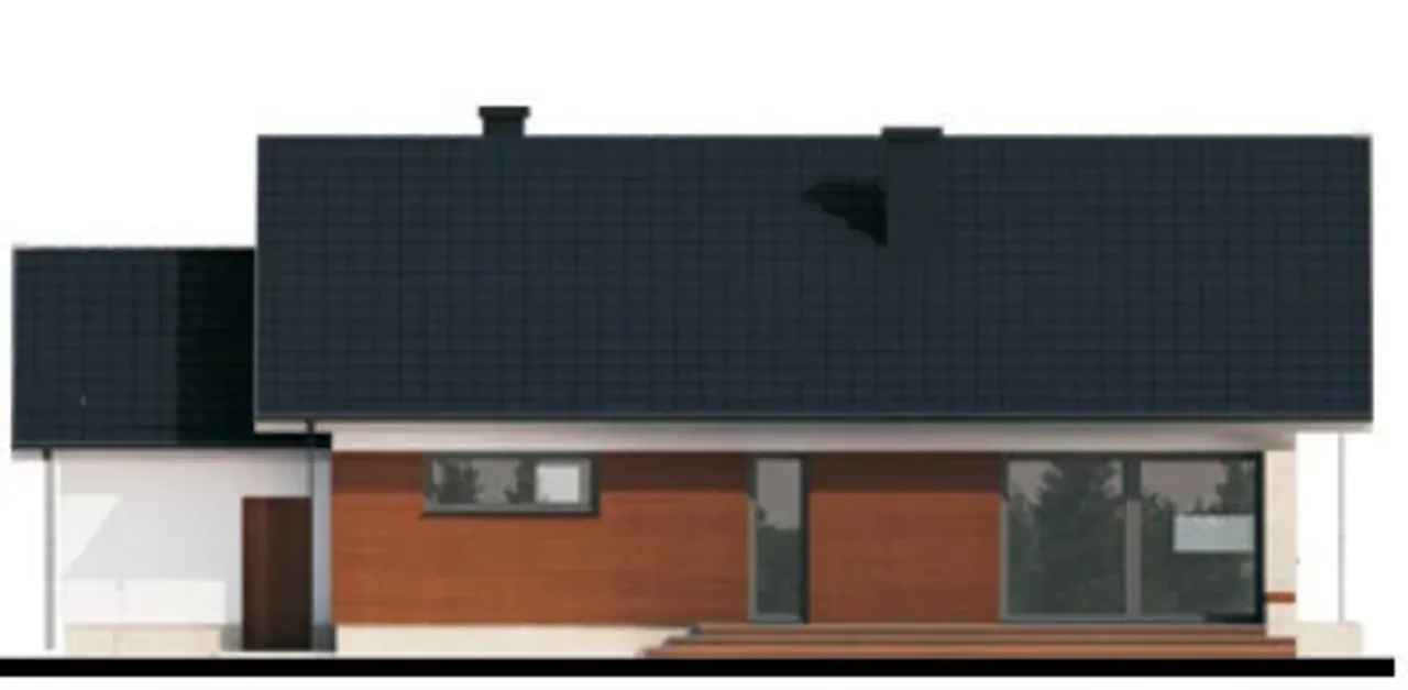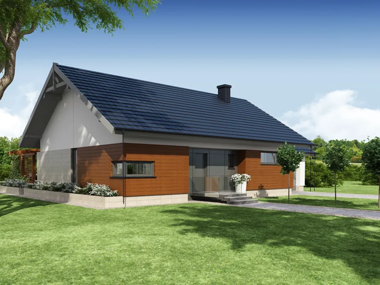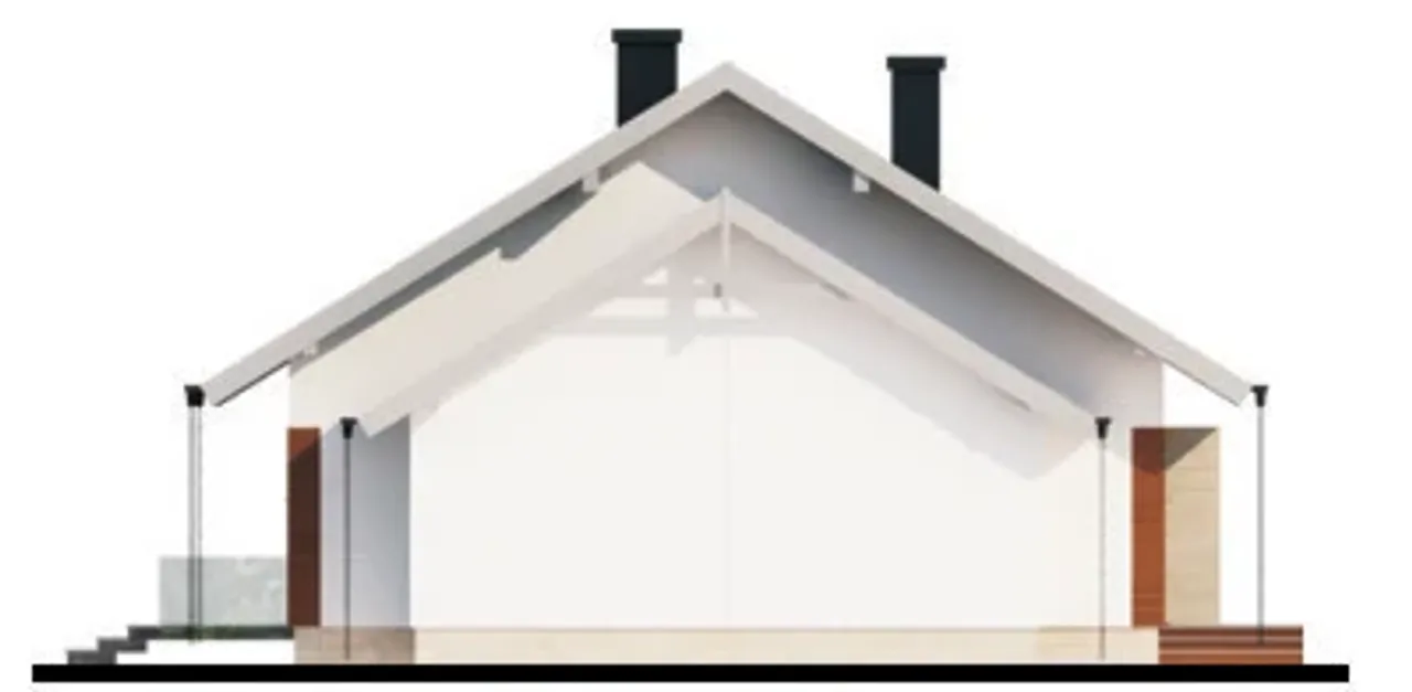 Projekt domu Gorgiasz to parterowy dom pokryty dachem dwuspadowym. Budynek mimo tradycyjnej bryły, jest nowoczesny i posiada oryginalny wygląd, wszystko to za sprawą nowoczesnego wykończenia. Od strony frontowej znajdują się delikatnie wcięte w bryłę budynku drzwi wejściowe, do których prowadzą nas dwie przeszklone balustrady. Dodatkowo w projekcie przewidziano garaż jednostanowiskowy W projekcie domu Gorgiasz od strony ogrodu umieszczono niezadaszony taras, projekt jest rozwiązaniem przeznaczonym dla ludzi ceniących sobie niecodzienne rozwiązania oraz niepowtarzalny wygląd domu.