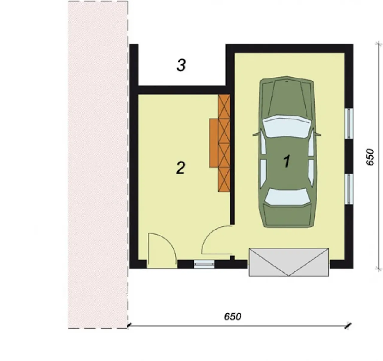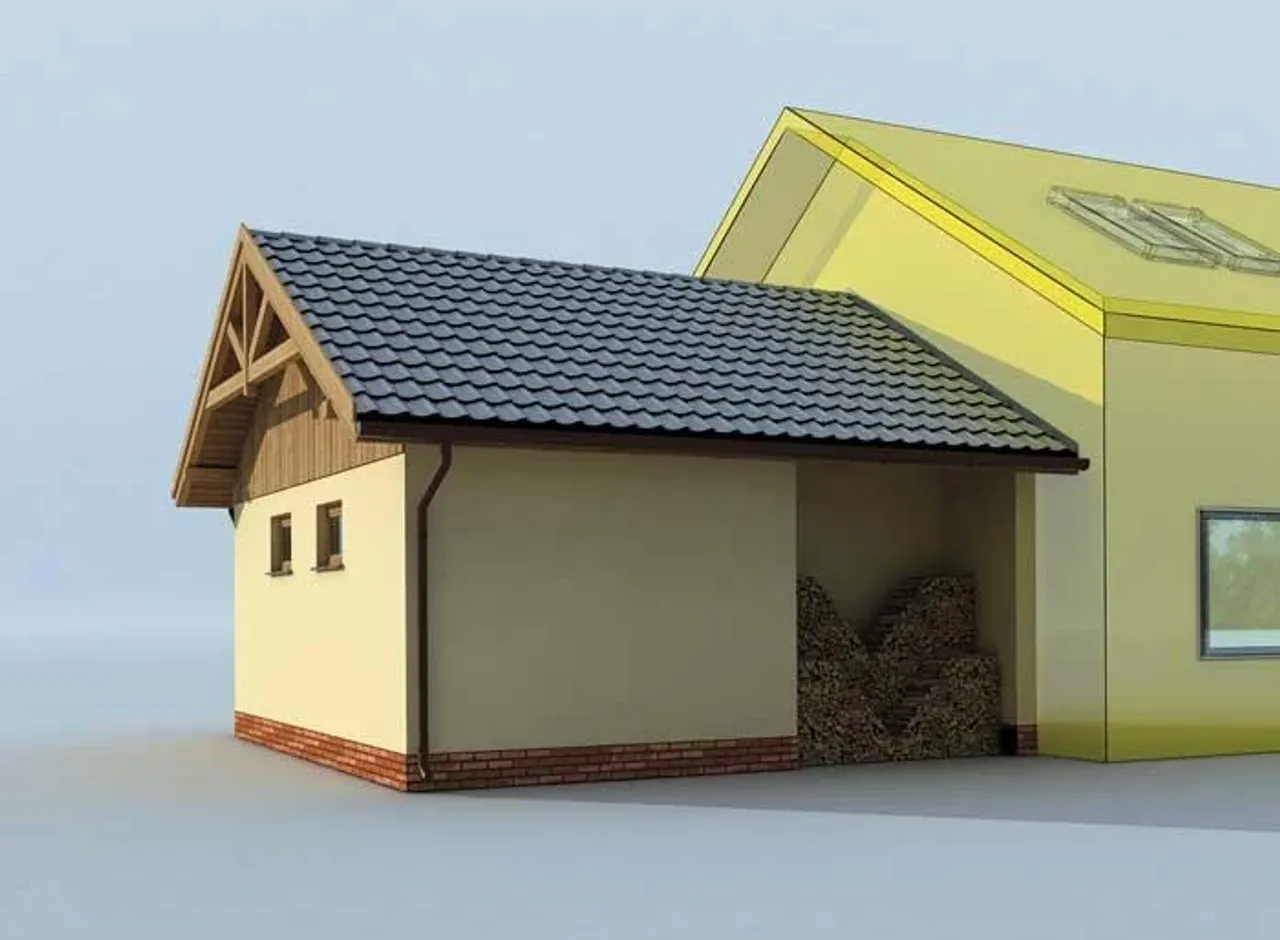 | Przestrzeń z pom. gospodarczym, z drewutnią |