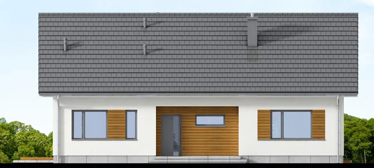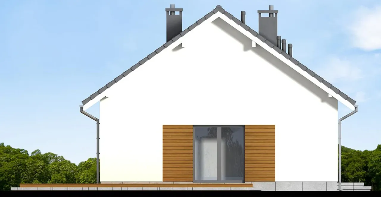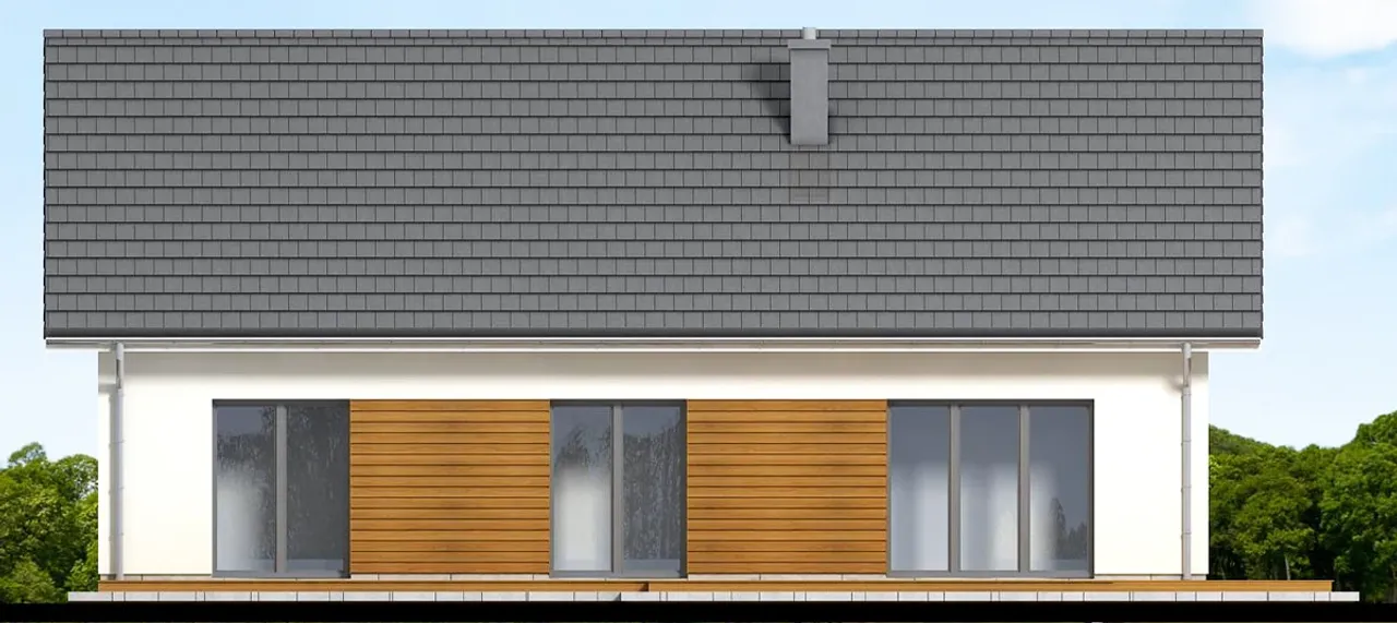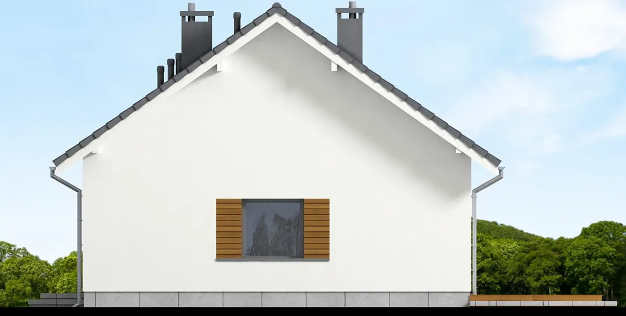 Drewniana konstrukcja dachu z wytrzymałym pokryciem z dachówki ceramicznej lub betonowej tworzy spójną całość z resztą budynku. Brak garażu stanowi idealne rozwiązanie dla tych, którzy stawiają na eliminację dodatkowych przestrzeni na rzecz większej aranżacji ogrodu lub tarasu. Dom zaprojektowano z myślą o elastyczności - możliwość wyboru ogrzewania gazowego lub na paliwo stałe daje swobodę dostosowania budynku do własnych preferencji i dostępności źródeł energii.