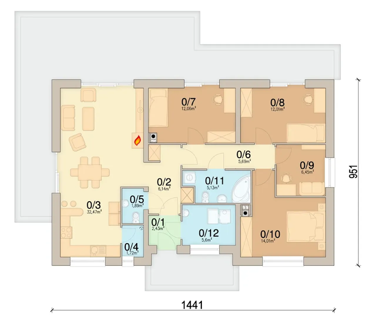 Dom Grappa powstał z myślą o osobach poszukujących komfortu, swobody aranżacji oraz trwałych rozwiązań technologicznych. Stanowi gotową odpowiedź na potrzeby osób ceniących ekonomiczne ogrzewanie, doskonałą izolację oraz prostotę utrzymania porządku. Funkcjonalna przestrzeń parterowa, kominek w salonie i brak garażu pozwalają dopasować nieruchomość do indywidualnych preferencji oraz wymagań konkretnej działki.